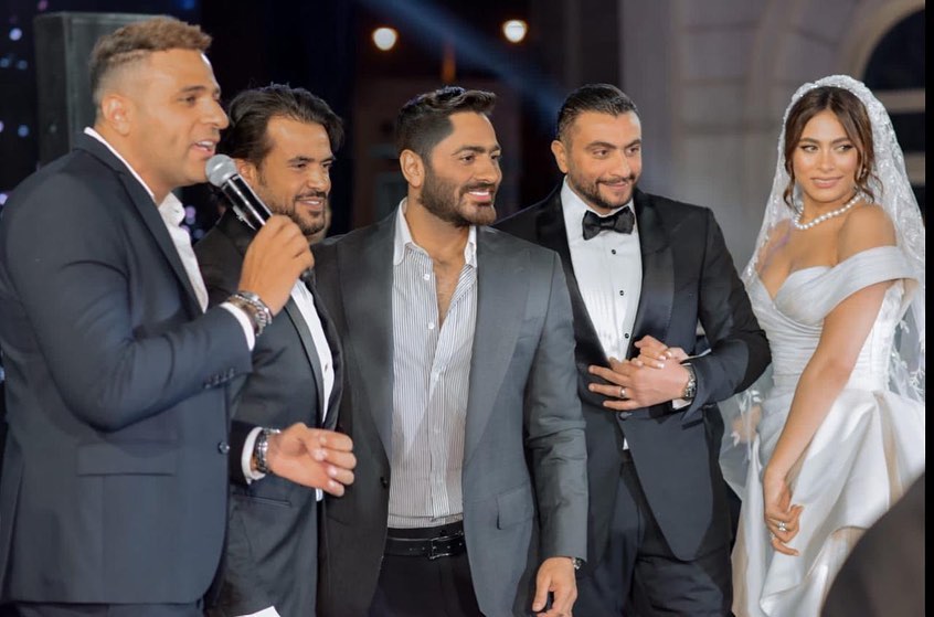 الفقرة الأولى من حفل الزفاف قام بإحيائها نجم أراب أيدول المطرب أحمد جمال وقدم عدد من أغانيه ومنهم إضحكي ونشيد العاشقين، وشهدت الأغنية الأخيرة أول رقصة رومانسية بين العروسين
