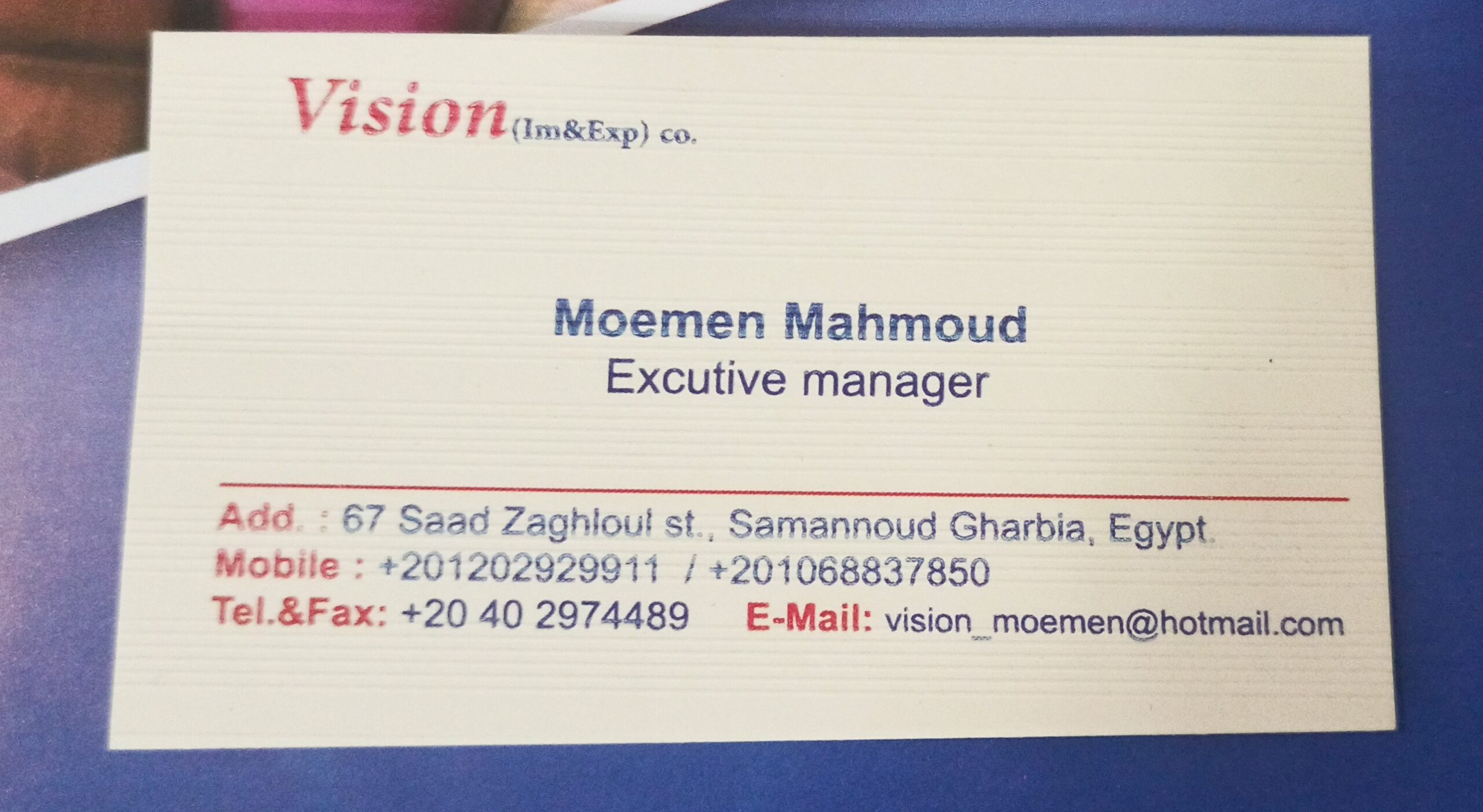 للتواصل مع Vision للاستيراد والتصدير :