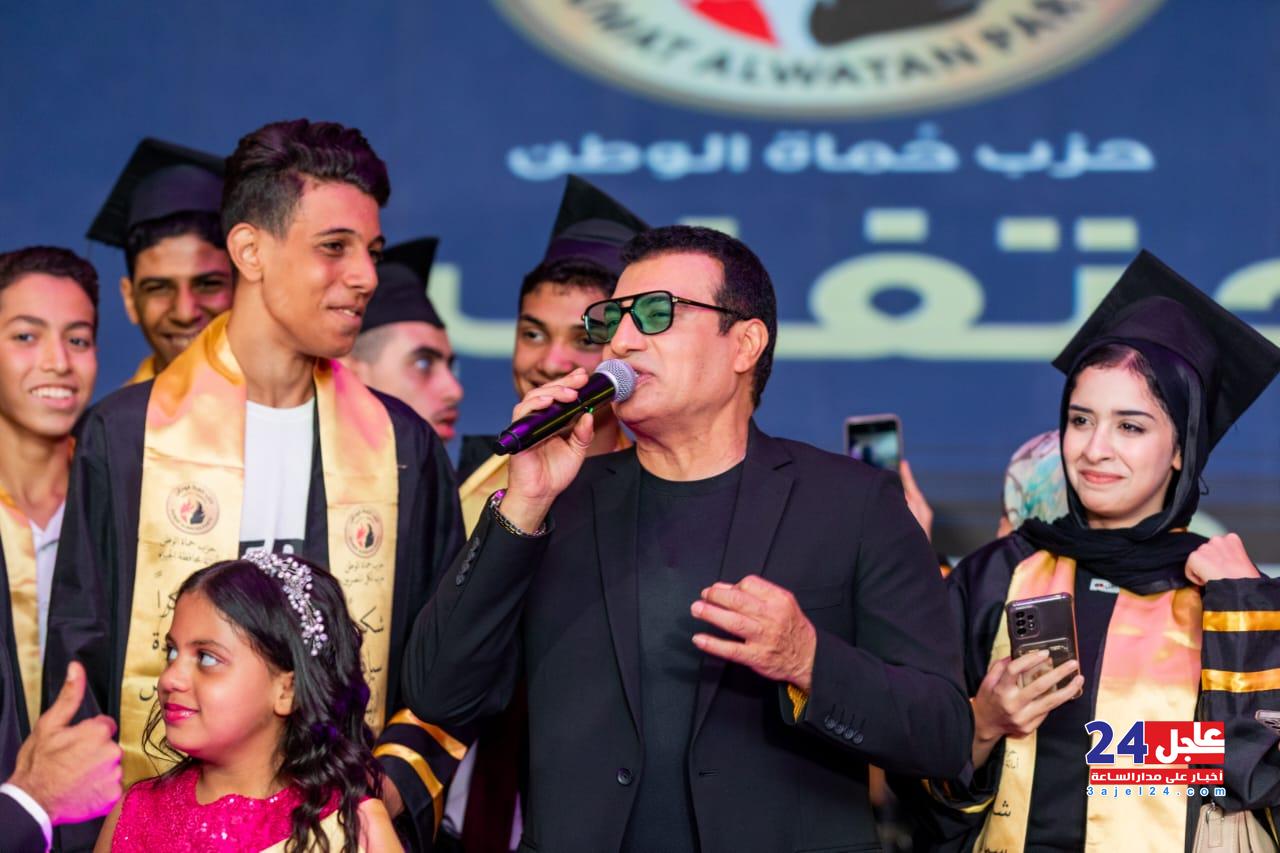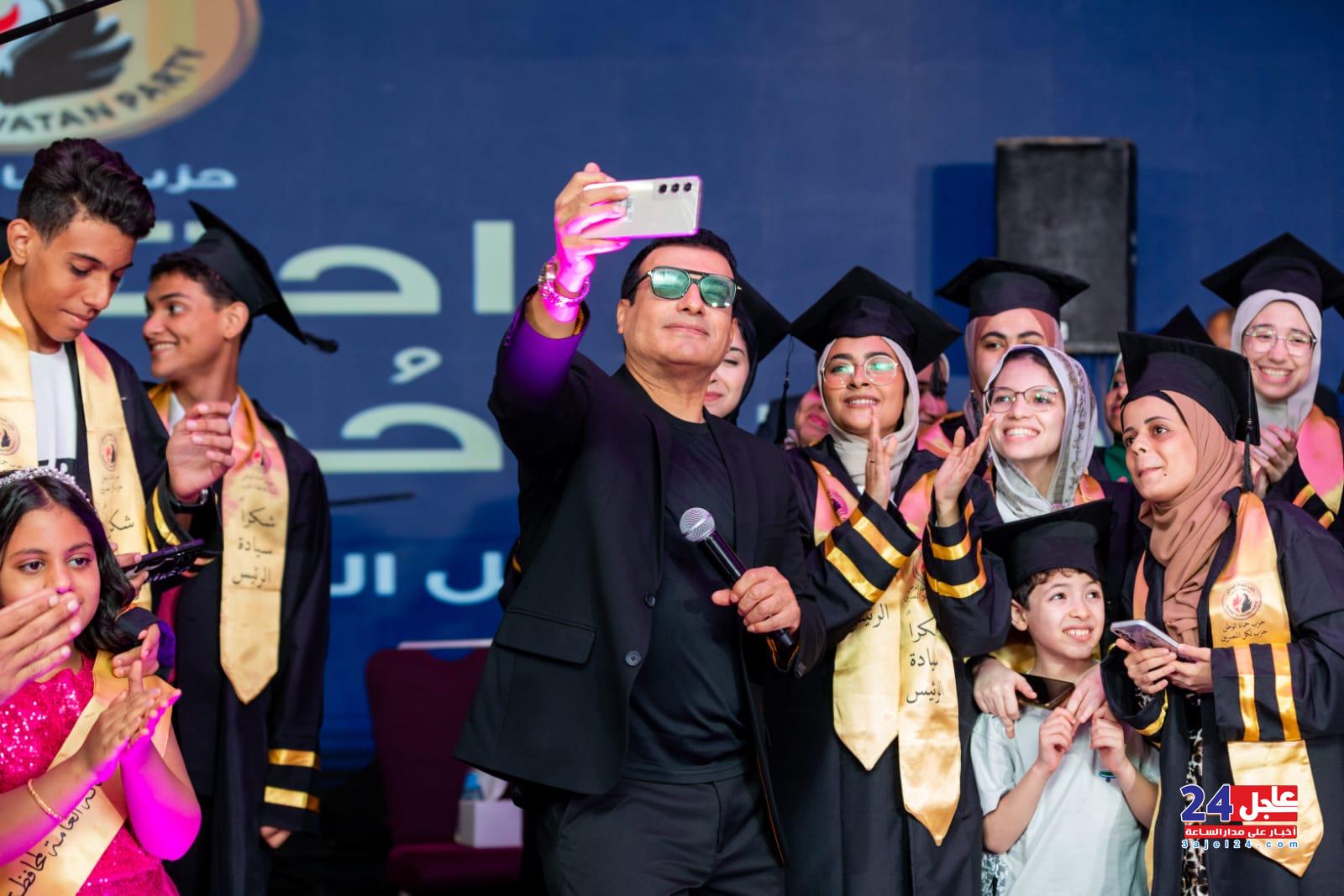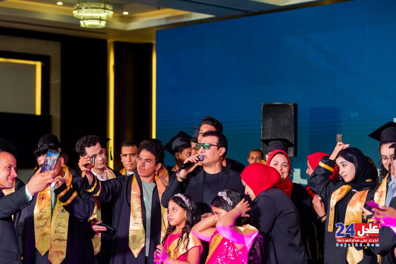 وجاء ختام الحفل مع النجم ايهاب توفيق الذي قام بغناء العديد من أشهر أغانيه وسط رقص وتفاعل الطلاب والحضور والتقاط الصور السيلفي والتذكارية معه .