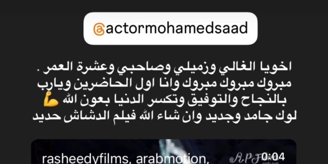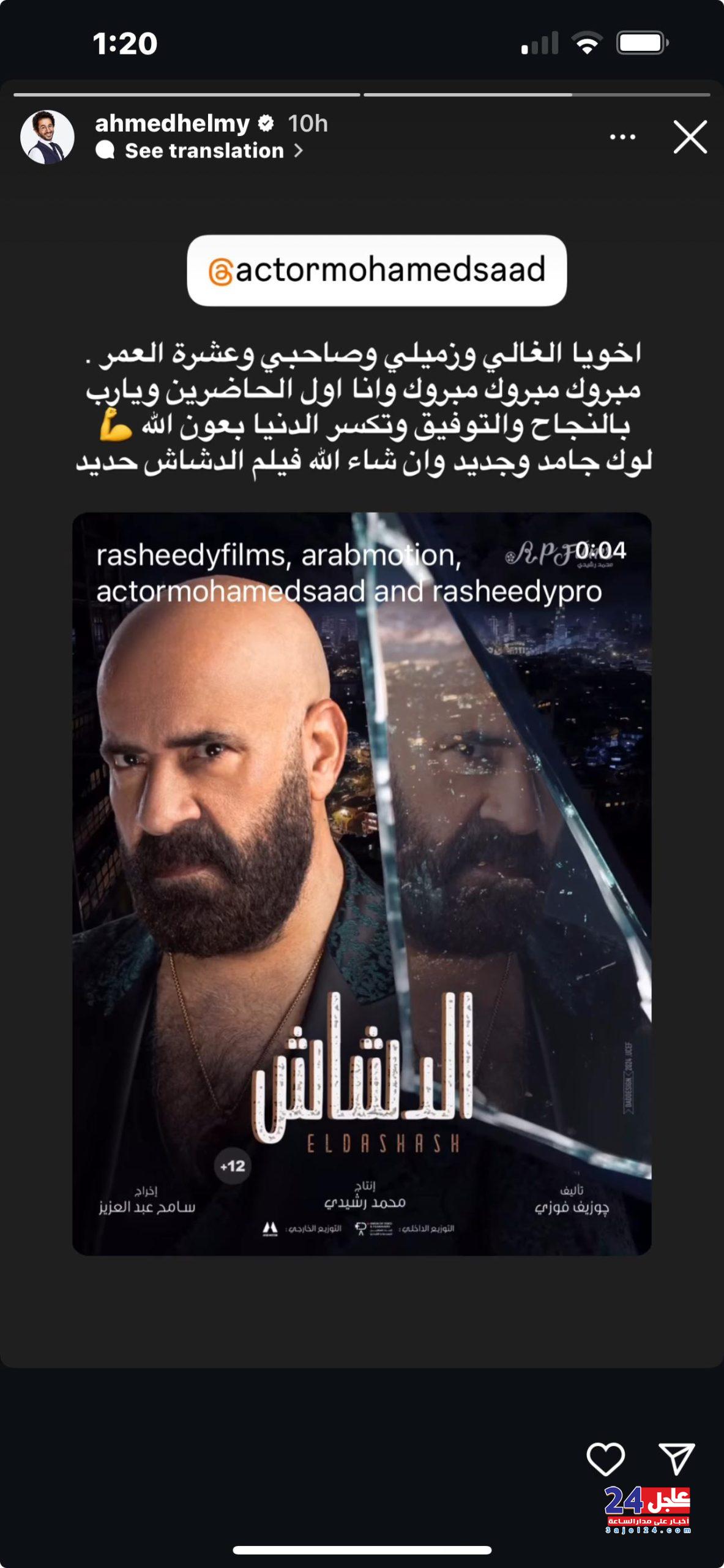 قام النجم أحمد حلمي بتهنئة النجم محمد سعد علي أحدث أفلامه الدشاش والذي من المقرر طرحه في دور العرض السينمائية يوم ١ يناير لينافس بشكل قوي في هذا الموسم والذي يعتبر عوده قوية للنجم محمد سعد في السينما .