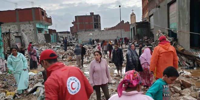 تواصل فرق التدخل أثناء الطوارئ بالهلال الأحمر المصري لليوم الثاني تقديم المساعدات للأسر بالمناطق المتضررة من سيول الأمطار، حيث تواجدت في الساعات الأولى من صباح اليوم الجمعة في حي الزرايب بمنطقة 15 مايو لتقديم المساعدات للأسر وأهالي المنطقة المتضريين من موجة الطقس السيء التي تتعرض لها البلاد منذ أمس، حيث يتم تقديم المساعدات من بطاطين ومواد غذائية.
