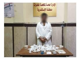 ضبط (أحد الأشخاص ” له معلومات مسجلة”) حال تواجده بدائرة قسم شرطة أول العامرية بمحافظة الإسكندرية ، وبحوزته (عدد 2 أسطوانة لمخدر الهيروين وكذا كمية لذات المخدر معدة للترويج وزنت 1,250 كيلو جرام – مبلغ مالى– هاتف محمول – ميزان ).