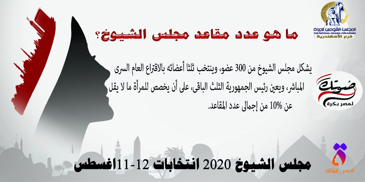 و اضافت مقررة الفرع ان الأنشطه تتضمن على التوازي توعية الكترونيه من خلال الأنفوجراف و الذي يحتوى على معلومات تهم الناخبين عن الإنتخابات و مواعيدها و يتم نشرها يوميا على الصفحه الرسميه (المجلس القومي للمرأة فرع الأسكندرية ) على الفيس بوك بالإضافه إلى جولات توعيه ميدانيه يقوم بها مجموعه من اعضاء الفرع تستهدف السيدات في المناطق الأكثر احتياجا لتشجيعهم على النزول و التصويت و المشاركه مع التأكيد على ضرورة الإلتزام بالاجراءات الإحترازية المتبعة خلال المشاركة السياسية فى إنتخابات مجلس الشيوخ لمواجهة تفشي فيروس كورونا المستجد كوفيد ١٩ .