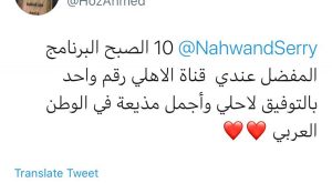 التعليقات أيضا تضمنت حديث مشجع أهلاوي قوله:” عندما تتشكل الشياكة والأناقة والثقافة فى هية إنسان.. تجد نفسك أمام نهاوند سري”، فيما تطرقت التعليقات أيضا إلي بناء شخصية مقدمة البرنامج حيث قال أحد المتابعين في تعليقه علي أعمال التطوير لقناة النادي الأهلي:”إلي الآن برنامج 10 الصبح في قناة الأهلي من أفضل البرامج في القناة – نهاوند سري وكريم كوجك ثنائي مميز ومثقف ولديهم كاريزما ..ومكسب لينا كأهلاوية نهاوند سري لباقة حضور ثقافة”.