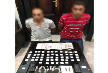 ذلك حال قيامهما بمزاولة نشاطهما الإجرامى فى الإتجار بالمواد المخدرة بدائرة القسم.. وبمواجهتهما إعترفا بحيازتهما للمواد المخدرة بقصد الإتجار، والمبلغ المالى من متحصلات تجارتهما غير المشروعة، والهواتف للإتصال بعملائهما .