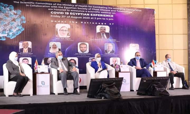 جاء ذلك خلال كلمتها بفعاليات الويبينار العلمي للجنة العلمية لمكافحة فيروس كورونا المستجد بالتعاون مع الجمعية المصرية للأمراض الصدرية والدرن، اليوم الجمعة، وذلك برئاسة الدكتورة هالة زايد وزيرة الصحة والسكان، والدكتور محمد عوض تاج الدين، مستشار رئيس الجمهورية للشئون الصحة والوقاية، لاستعراض جهود الدولة المصرية في مكافحة فيروس كورونا المستجد، بحضور عدد من كبار أساتذة الصدر في الشرق الأوسط، وبمتابعة أكثر من ١٠ آلاف من الأطباء من مختلف دول العالم.