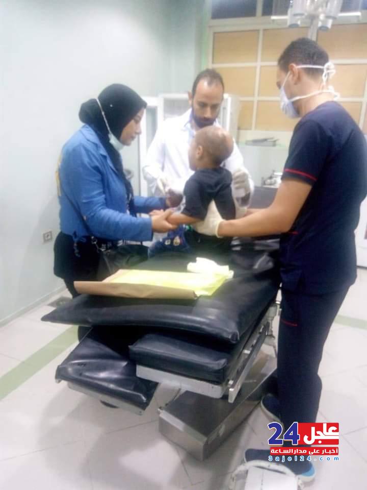 من جانبها قامت لجنة الاستغاثات الطبية بعرض الطفل علي اللجنه الطبيه العليا بمجلس الوزراء والتي بدورها أوصت بمناظرته وعلاجه بمستشفى دار الشفاء بالعباسية ، كما قام فريق التدخل السريع باللجنة بالتنسيق مع الدكتور محمود الشرقاوي مدير مستشفي دار الشفاء وقام باستقبال الطفل الدكتور محمد العشماوي نائب مدير المستشفي وتم عرض الطفل علي أ.د أيمن عبدالعزيز أستاذ جراحه العظام بجامعه عين شمس لتوقيع الكشف الطبي وعمل الفحوصات والآشعات اللازمة حيث وجد كسر غير ملتئم بالعضد الأيمن وكسر ملتئم بالعضد الأيسر، تم عمل جبس للعضد الأيمن مع التوصية بالمتابعه وإعاده الآشعات بعد ثلاثة أسابيع للتأكد من التئام الكسور.