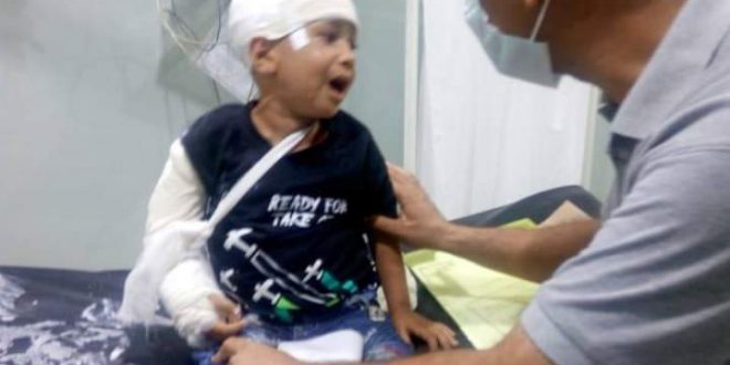 في ذات السياق تم عرض الطفل علي استشاري التجميل بالمستشفى حيث وجد تقرحات وسحجات بفروة الرأس وأماكن متفرقة بالجسد ، وعلى الفور تم عمل غيار طبي على الجروح وتحديد خطة العلاج التجميلي اللازمة