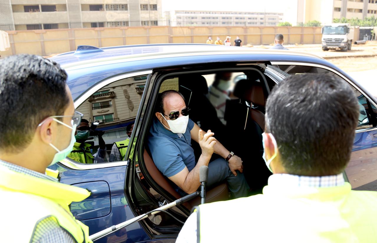 وحرص الرئيس علي التوقف للحوار مع العاملين والمهندسين بعدد من تلك المواقع لمتابعة سير العمل، حيث شدد على أهمية الالتزام بالإجراءات الاحترازية والوقائية من انتشار فيروس كورونا حفاظا علي صحة وسلامة العاملين.