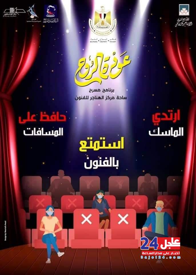 ويختتم برنامج “عودة الروح” لشهر سبتمبر، بالعرض المسرح ” سينما مصر”، الذى يعرض أيام ٢٨ و٢٩و٣٠، بطولة مجموعة من الشباب خريجى الدفعة الثانية من استوديو المواهب بمركز الإبداع الفني، التابع لقطاع صندوق التنمية الثقافية برئاسة الدكتور فتحى عبد الوهاب، والعرض رؤية وإخراج خالد جلال.