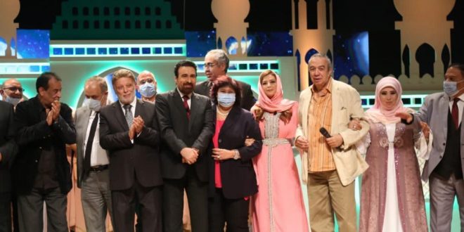 وزيرة الثقافة ونقيب الممثلين يشهدان ليلة في حب الرسول لجمال عبد الحميد علي مسرح البالون
