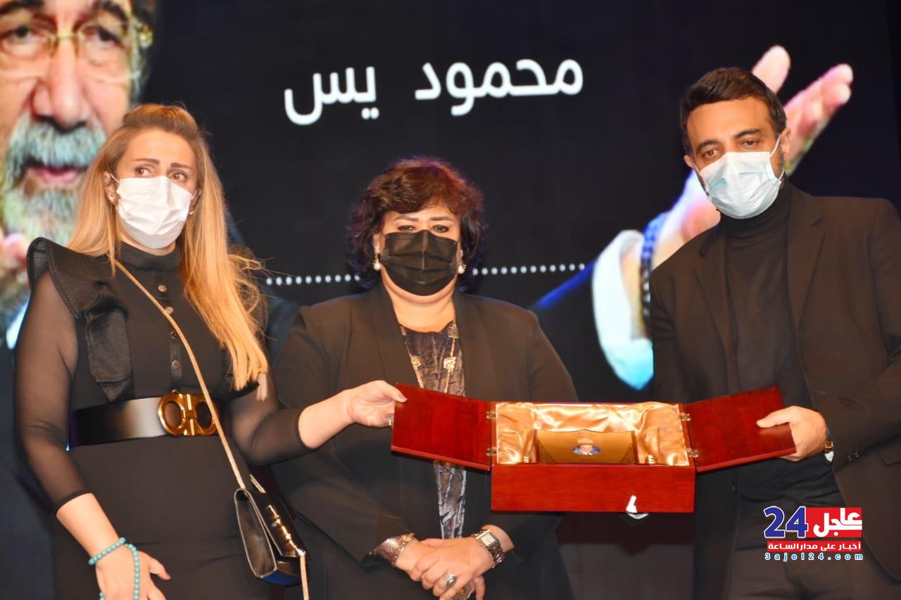 وقامت وزيرة الثقافة بإهداء أسرته درعاً تذكارياً يليق بمكانته وقيمته الفنية العملاقة، وامتناناُ وعرفاناً بما قدمه من إثراء للفن المصري والعربي على حد سواء وتسلمه نجلاه عمرو محمود ياسين، ورانيا محمود ياسين.