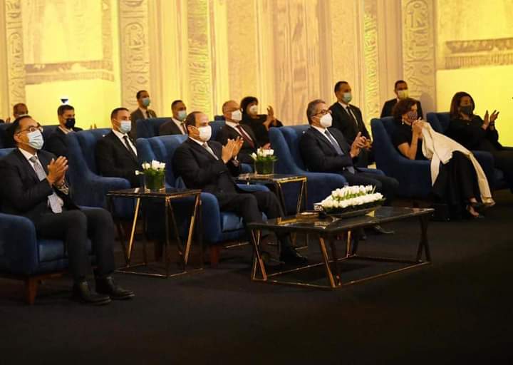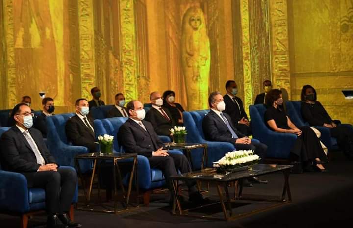 وشهد الرئيس السيسي حفل انطلاق نقل المومياوات من المتحف المصري بالتحرير الي متحف الحضارة بمصر القديمة