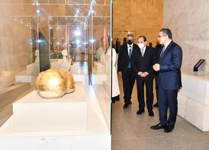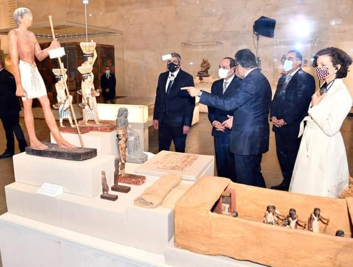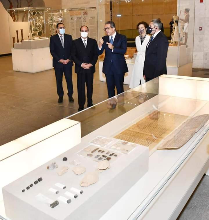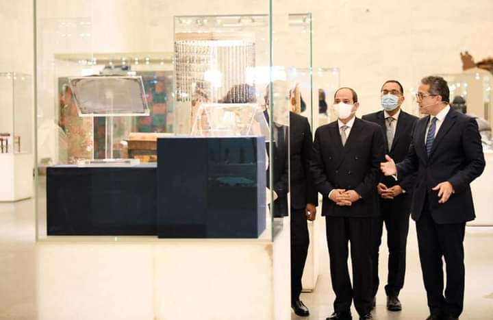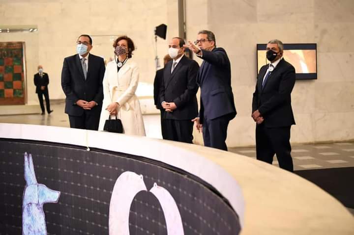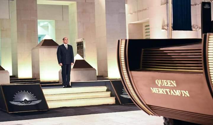 واستمع الرئيس السيسي إلى شرح مفصل عن متحف الحضارة المصرية، الذي من المقرر أن يستقبل المومياوات الملكية في حفل بهيج يشهد له العالم.