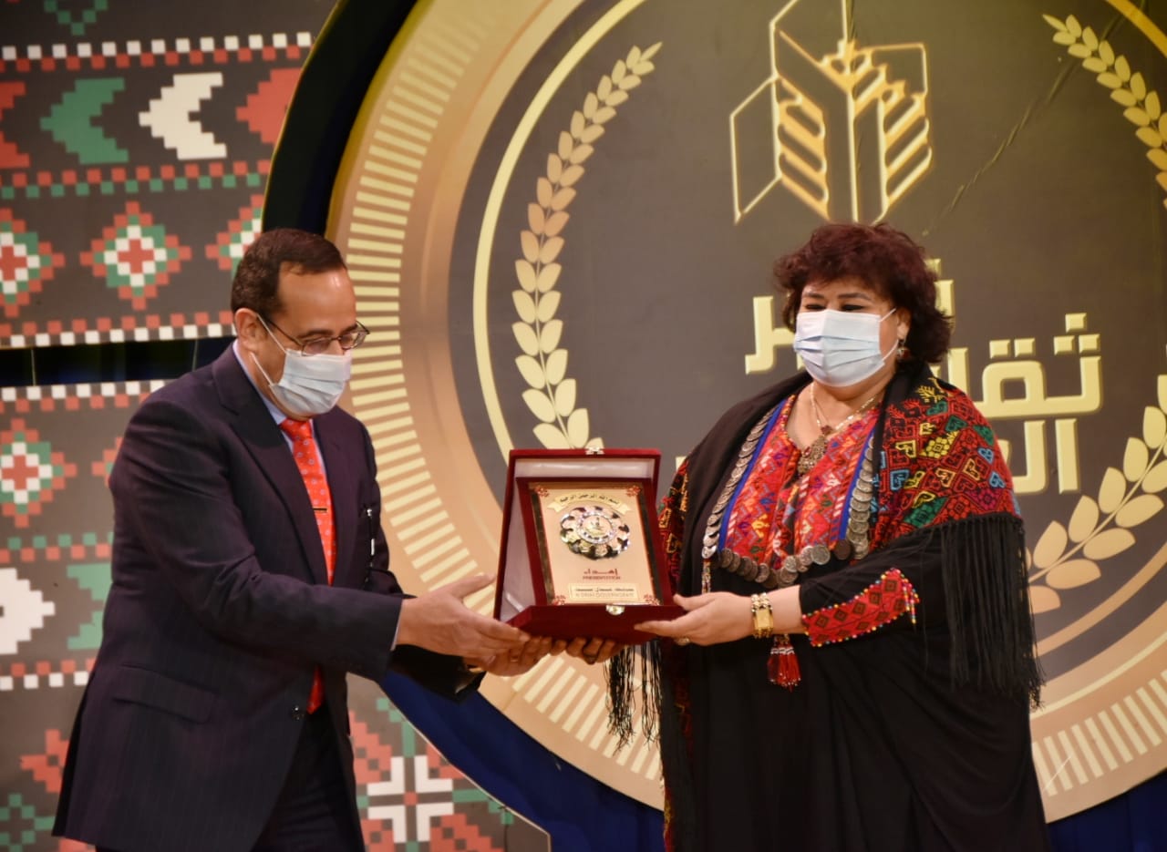 كما كرم محافظ شمال سيناء وزيرة الثقافة بإهدائها درع المحافظة وهدية تذكارية تمثل احد ملامح التراث السيناوي وكذلك قام بتكريم رئيس هيئة قصور الثقافة ورئيس الاوبرا ، وبدورها كرمت وزيرة الثقافة المحافظ بإهدائه درعا تذكاريا تقديرا لدعمه العمل الثقافي والتنموي بالمحافظة.