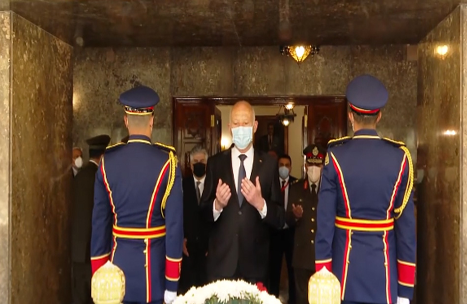 زار الرئيس التونسى قيس سعيد اليوم الجمعة قبر الرئيس الراحل جمال عبد الناصر، على هامش زيارته لمصر، حيث كتب فى كلمه فى دفتر الزيارات قال فيها: “وقفت اليوم أمام ضريح الزعيم جمال عبد الناصر مترحما على روحه الطاهرة ومتذكرا مواقفه.. كنا فى تونس نتابع خطبه، ولا زالت مواقفه حاضرة فى أذهان الكثير.. رحمه الله رحمة واسعة وألحقه بالنبيين والصديقين والشهداء والصالحين وحسن أولئك رفيقا