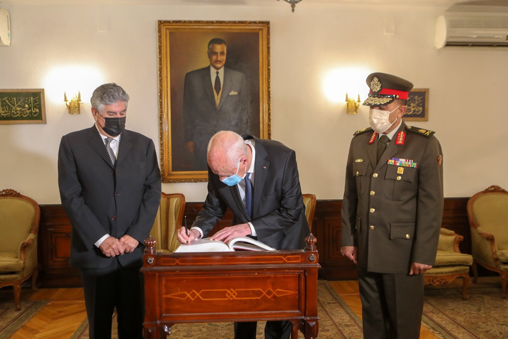 وكان الرئيس عبد الفتاح السيسى استقبل اليوم الرئيس التونسي قيس سعيد بقصر الاتحادية، حيث أقيمت مراسم الاستقبال الرسمى وتم استعراض حرس الشرف وعزف السلامين الوطنيين، كما تم عقد مؤتمر صحفى مشترك، كما استقبل الرئيس التونسى قيس سعيد اليوم السبت بمقر إقامته بقصر القبة الدكتور مصطفى مدبولى، رئيس الوزراء