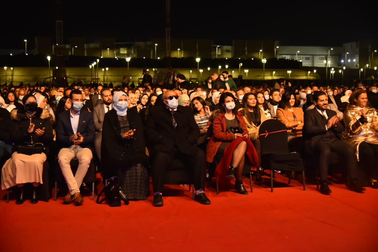 وحرص عمر خيرت في بداية وصلته على تحية الجمهور على حفاوة الاستقبال، وقدم عددًا كبيرًا من أشهر المقطوعات الموسيقية التى تألق بها طوال مشواره الفنى، منها: “إعدام ميت”، “ضمير أبلة حكمت”، “عارفة”، “اللقاء الثانى”، “غوايش”، “عفوًا أيها القانون”، “100 سنة سينما”، و”فيها حاجة حلوة”.. وغيرها مما تفاعل معها الجمهور رغم برودة الجو.