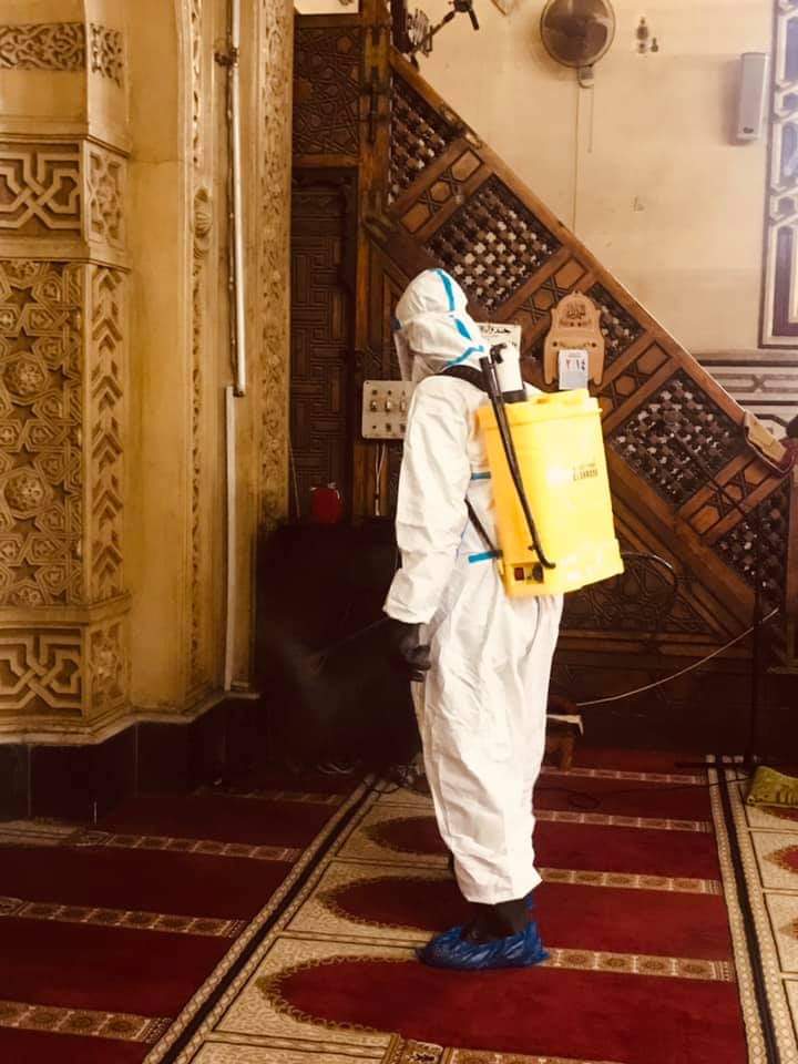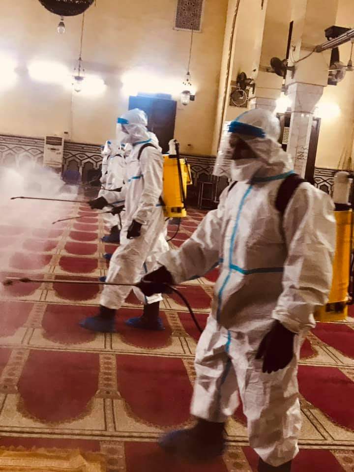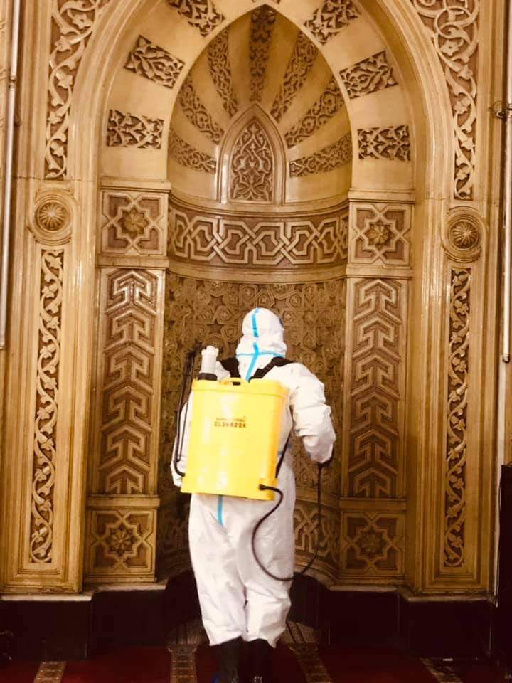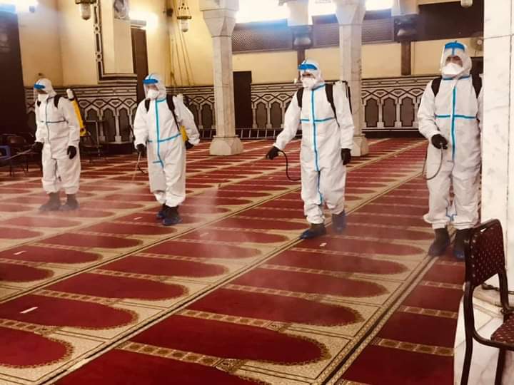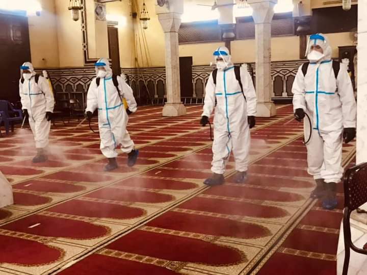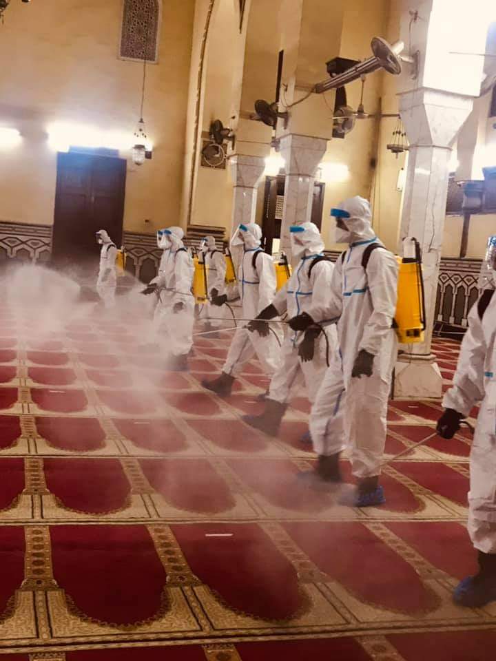 قامت عربات التطهير والتعقيم المتحركة والثقيلة وأطقم التطهير المحمولة بتنفيذ عمليات التطهير والتعقيم الوقائي لعدد من المساجد الكبرى التي تشهد إقبالاً من المصلين لأداء الشعائر خلال شهر رمضان، إذ جرى تطهير وتعقيم الجامع الأزهر ومسجد الحسين ومسجد عمرو بن العاص بمنطقة مصر القديمة، وشملت أعمال التطهير والتعقيم الوقائي واجهات المساجد والأرضيات والحوائط، وأاستخدمت في أعمال التطهير والتعقيم المواد الكيميائية المطابقة للمواصفات القياسية بما يحقق أفضل النتائج.