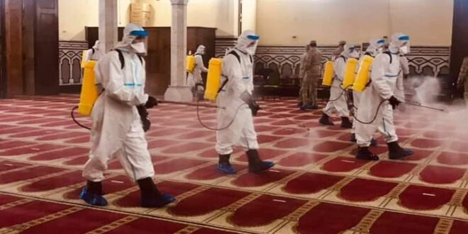 استكمالاً لدور القوات المسلحة الوطني في مساندة أجهزة الدولة لمجابهة خطر انتشار فيروس كورونا المستجد، واصلت الإدارات التخصصية القيام بأعمال التطهير والتعقيم للأماكن التي يرتادها الكثير من المواطنين بشكل يومي في رمضان لتجنب ارتفاع أعداد المصابين بفيروس كورونا