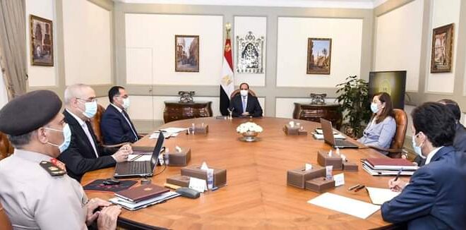 اجتمع الرئيس عبد الفتاح السيسي اليوم مع الدكتور مصطفى مدبولي رئيس مجلس الوزراء، والدكتورة هالة السعيد وزيرة التخطيط والتنمية الاقتصادية، والدكتور عاصم الجزار وزير الإسكان والمرافق والمجتمعات العمرانية، واللواء أمير سيد أحمد مستشار رئيس الجمهورية للتخطيط العمراني، واللواء أ.ح إيهاب الفار رئيس الهيئة الهندسية للقوات المسلحة.