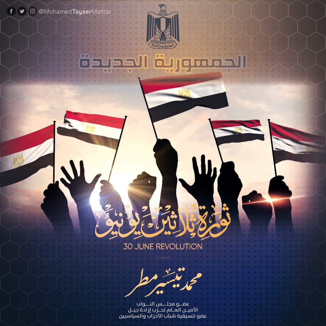 النائب محمد تيسير مطر يهنئ الرئيس والقوات المسلحة والشعب المصرى بذكرى 30 يونيو