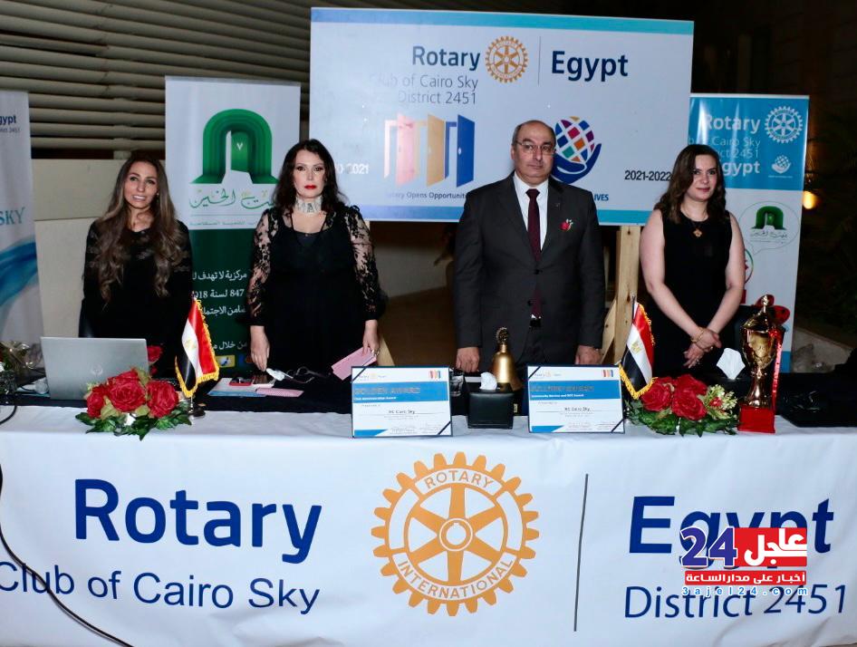 وعلى صعيد آخر، أقام نادي روتاري كايرو سكاي، حفلا بمناسبة انتهاء السنة الروتارية، وتكريم أعضاء النادي الذين شاركوا بالعمل في مشاريع النادي لخدمة المجتمع، وتسليم شارة القيادة من الرئيس السابق أيمن حسين إلى رئيس النادي الجديد المهندسة شيرين عقل.