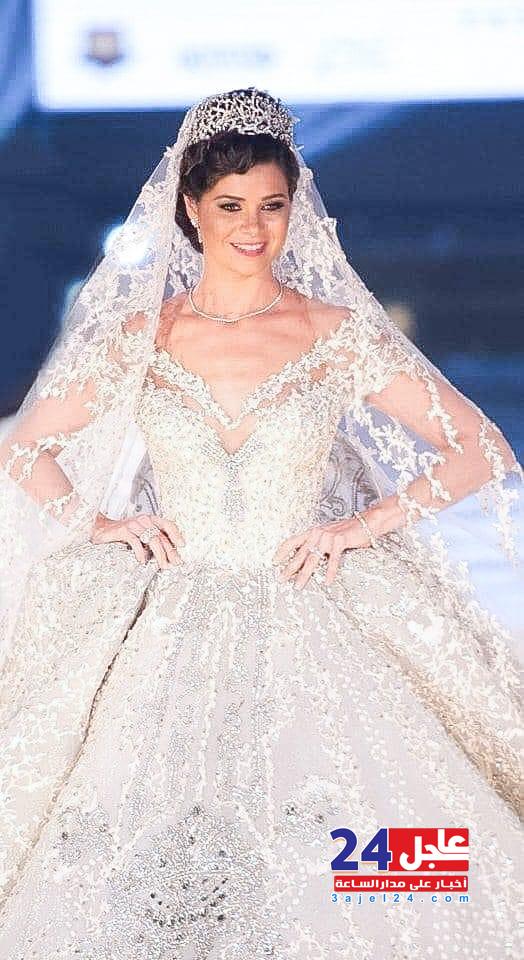 وتميز الفستان بذيل عريض مطرز بالكامل من الألماس وقصير من الإمام بشكل مختلف عن بقية فساتين الزفاف التى قدمها هانى البحيرى من قبل.