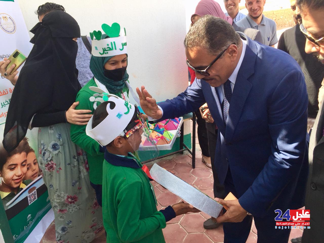 وخلال الزيارة للمدرسة بعد تطويرها استمع محافظ مطروح لبعض الفقرات التي قدمها طلاب المدرسة من فقرات مسرحية وإنشاد والقاء شعر، كما استمع لشرح من الميسرات حول سير اليوم الدراسي وشاهد لبعض الانشطة التي يمارسها الطلاب وأبدي سعادته الكبيرة بالمستوي الذي ظهر بها الطلاب والذي يعد أحد ثمار وإنجازات التعاون بين المحافظة ومؤسسة “مصر الخير “.
