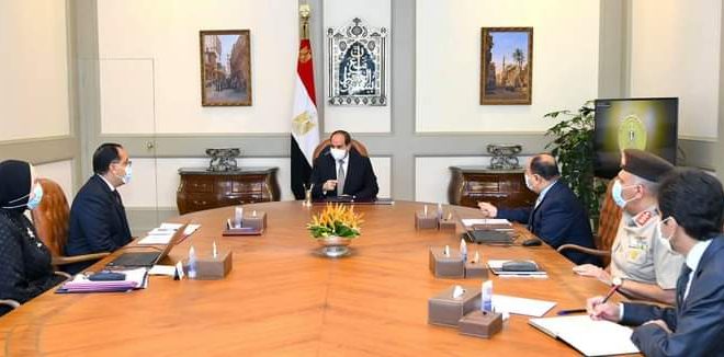 اجتمع الرئيس عبد الفتاح السيسي اليوم مع الدكتور مصطفى مدبولي رئيس مجلس الوزراء، والدكتور محمد معيط وزير المالية، والسيدة نيفين جامع وزيرة التجارة والصناعة، واللواء أ.ح إيهاب الفار رئيس الهيئة الهندسية للقوات المسلحة.