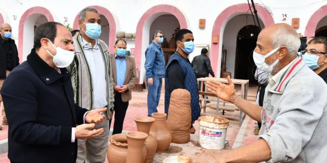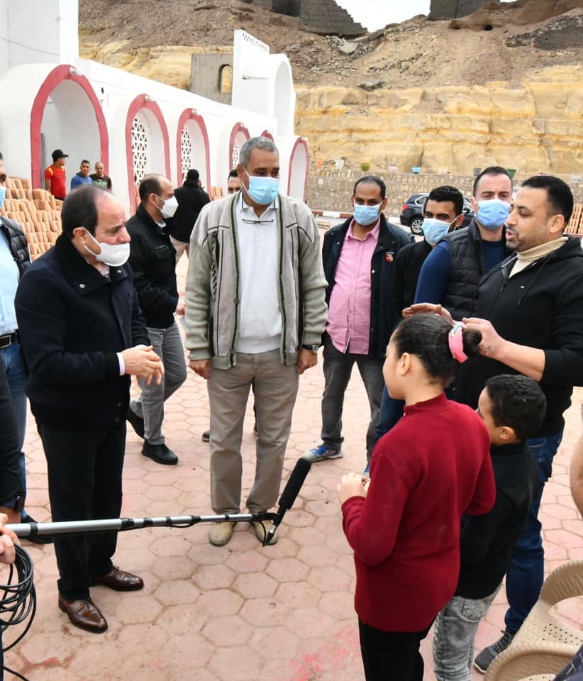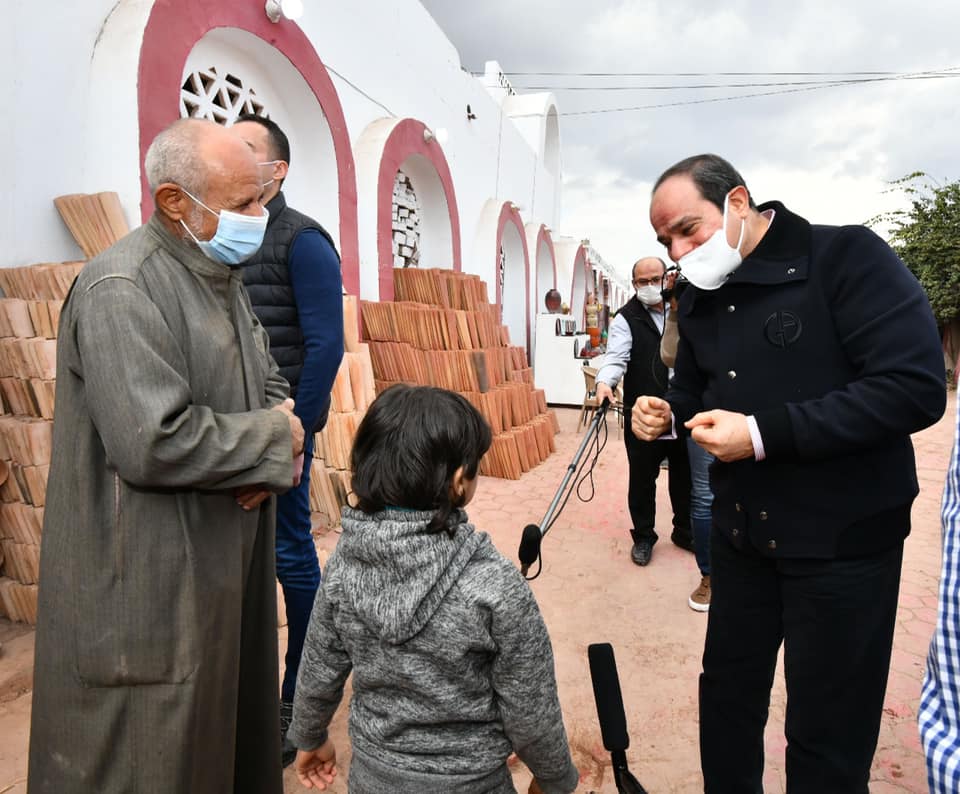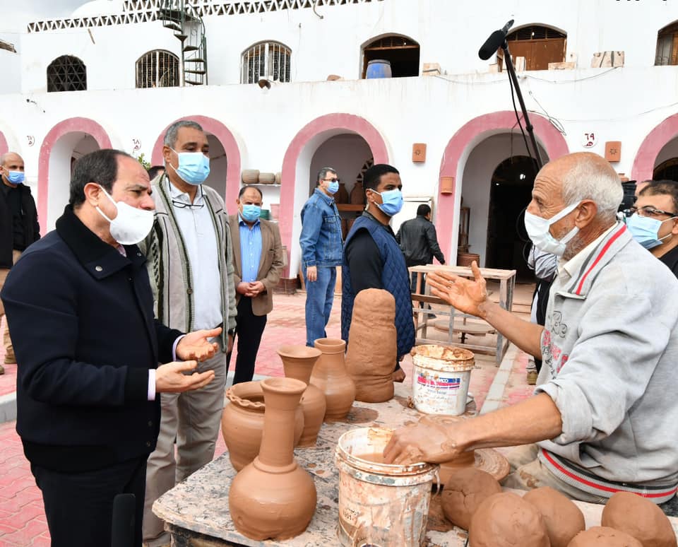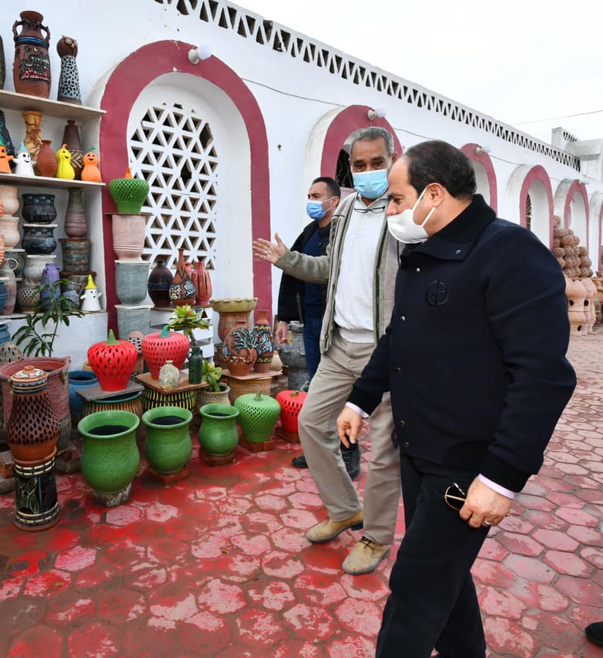وخلال الجولة، تبادل الرئيس السيسي، التحية مع المواطنين والعاملين في ورش الفخار بمصر القديمة، واستمع خلالها إلى طلباتهم واحتياجاتهم.
