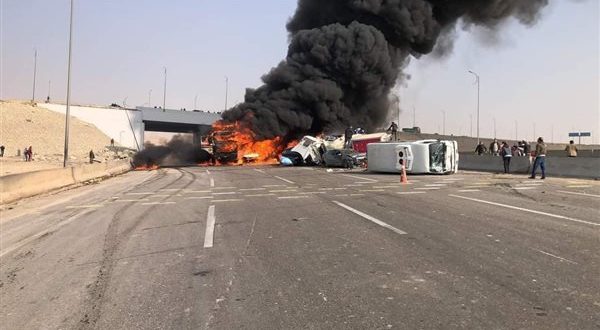 واشتعلت النيران في سيارة نقل وسيارتين ملاكي، في حادث تصادم عدد من السيارات أعلى الطريق الأوسطي بالتقاطع مع الطريق الدائري، وتكثف قوات الحماية المدنية بالقاهرة، جهودها للسيطرة على النيران