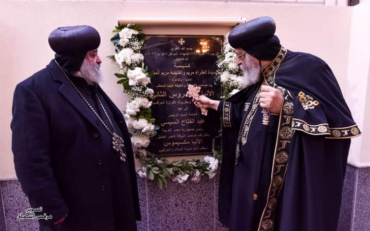 وأزاح قداسة البابا، لدى وصوله الكنيسة، الستار عن اللوحة التذكارية التي تؤرخ لتدشينها، بحضور اللواء أركان حرب فهمي هيكل قائد المنطقة المركزية العسكرية، وعدد من قيادات المنطقة، والقيادات الأمنية ورئيس حي مدينة السلام، وبعض أعضاء البرلمان، ونيافة الأنبا مكسيموس الاسقف العام لقطاع مدينة السلام والحرفيين الذي تتبعه الكنيسة المدشنة.