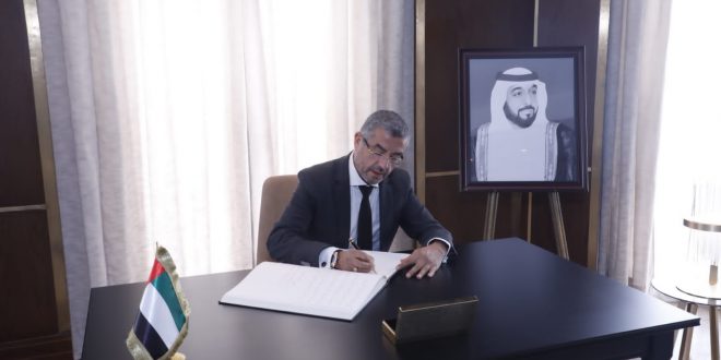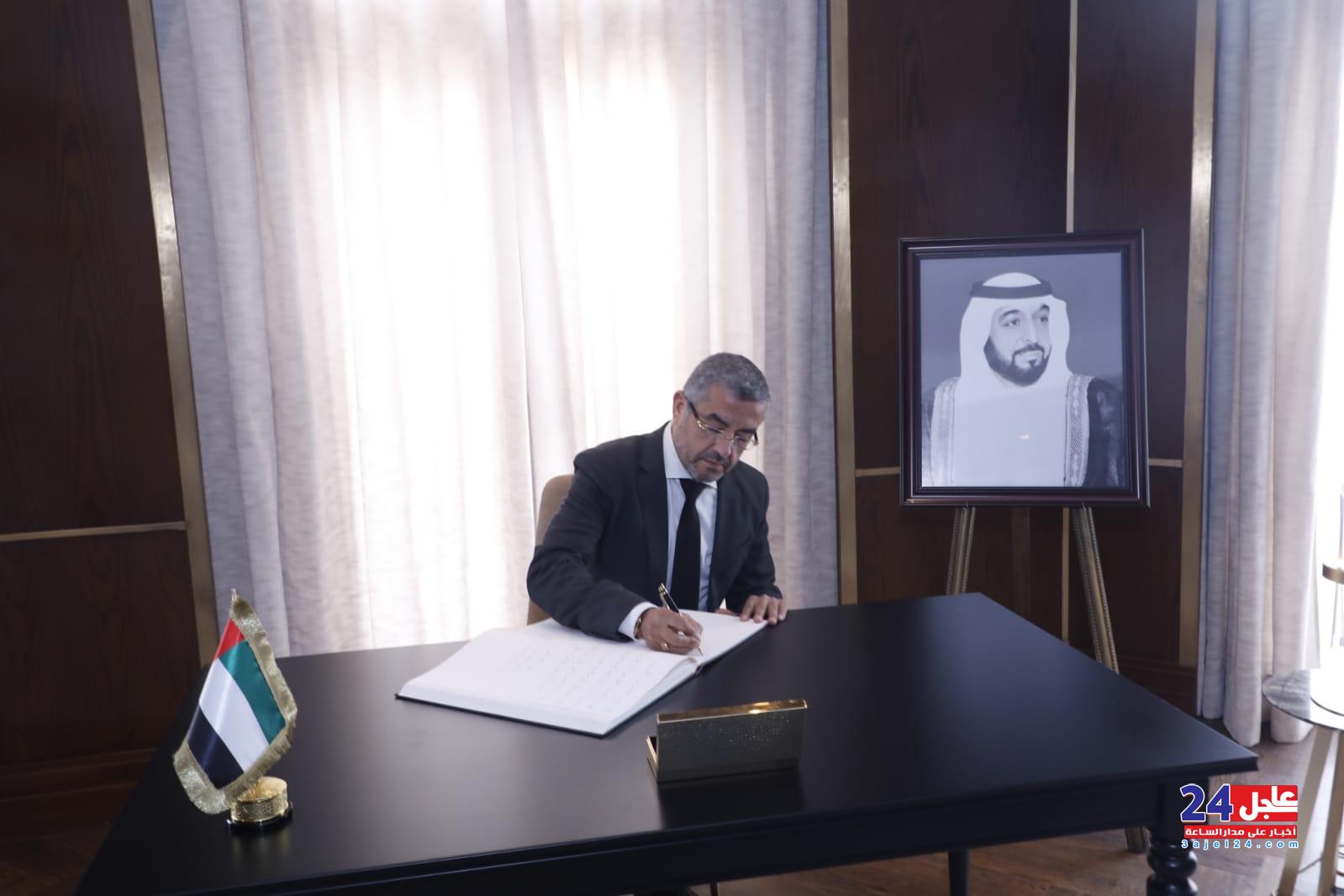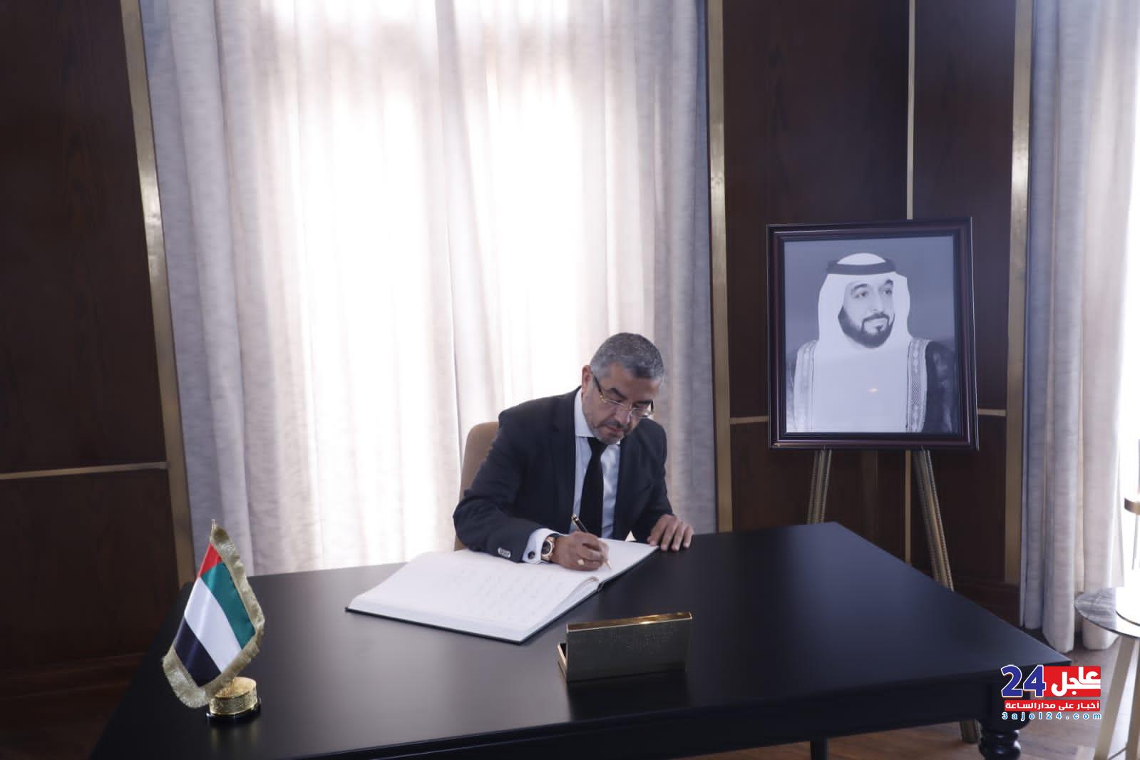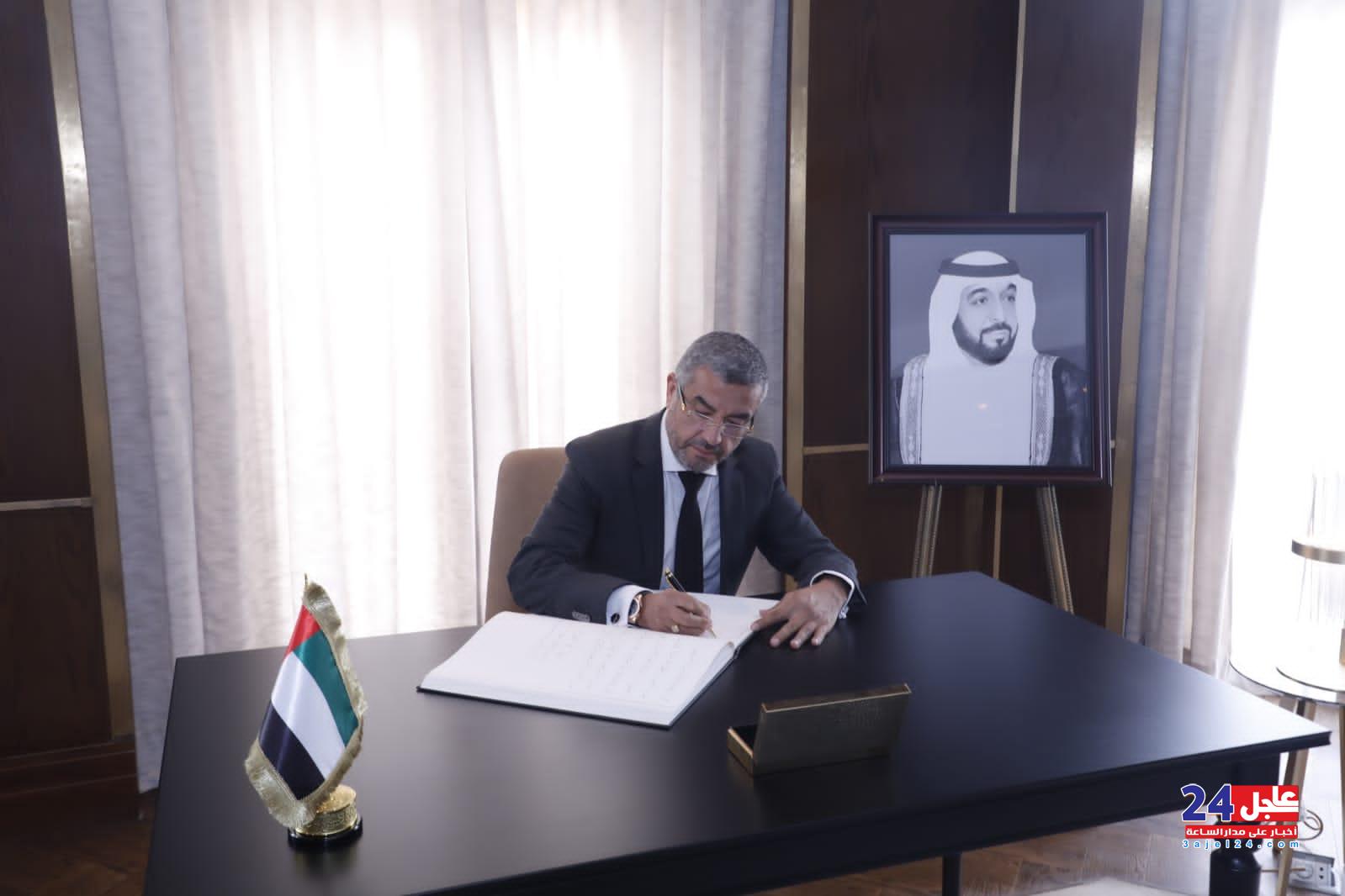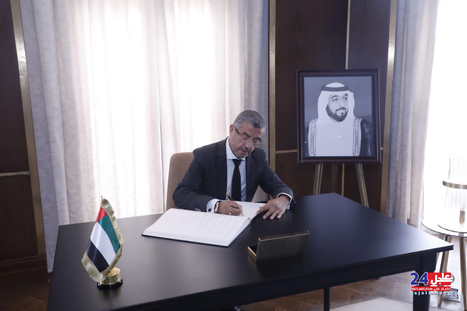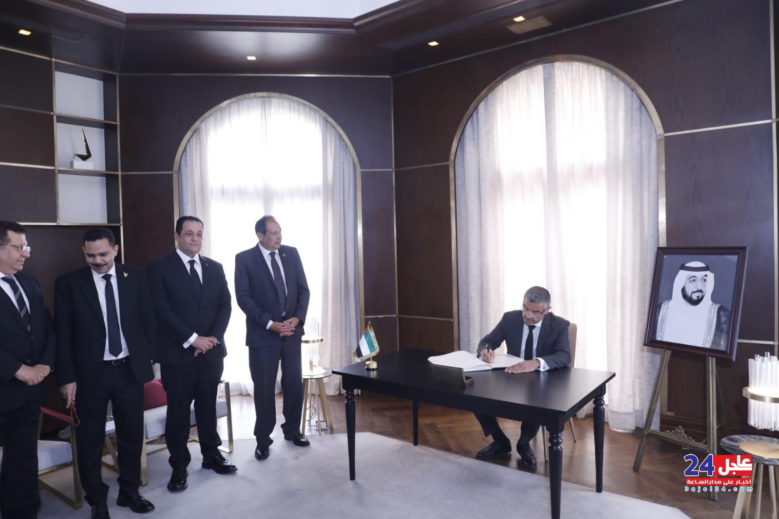 وقدم الوفد واجب العزاء إلى السفيرة مريم الكعبي سفير دولة الإمارات العربية المتحدة لدى مصر، وذلك بمقر السفارة بالقاهرة.