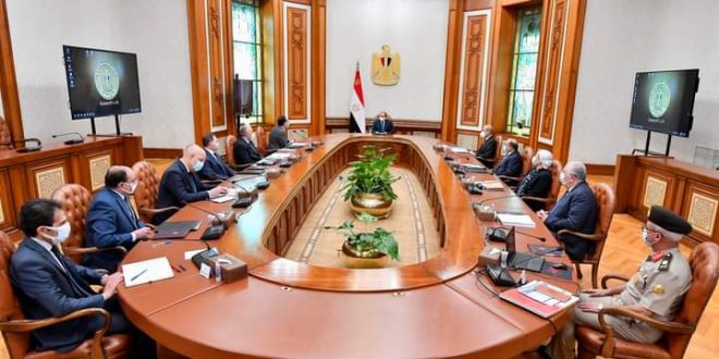 اجتمع الرئيس عبد الفتاح السيسي اليوم السبت مع الدكتور مصطفى مدبولي رئيس مجلس الوزراء، والمهندس شريف إسماعيل مساعد رئيس الجمهورية للمشروعات القومية والاستراتيجية، والدكتور محمد عبد العاطي، وزير الموارد المائية والري، والسيد محمود شعراوي وزير التنمية المحلية، والسيد محمود توفيق وزير الداخلية، والدكتورة ياسمين فؤاد وزيرة البيئة، والدكتور عاصم الجزار وزير الإسكان والمرافق والمجتمعات العمرانية، والسيد السيد القصير وزير الزراعة واستصلاح الأراضي، واللواء أمير سيد أحمد مستشار رئيس الجمهورية للتخطيط العمراني، واللواء أ.ح هشام السويفي رئيس الهيئة الهندسية للقوات المسلحة