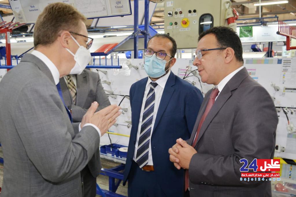 وعبر السفير الألمانى عن سعادته بمراحل الإنتاج داخل المصانع بداية من استلام المادة الخام إلى التصنيع الألى واليدوى لضفائر السيارات .