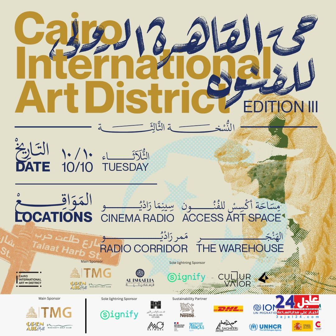 يسر مؤسسة “آرت دي إيجيبت/كلتشرفيتور” الإعلان عن انطلاق الدورة الثالثة من حي القاهرة الدولي للفنون، الذي يضم مجموعة من الفنون البصرية الفريدة، في منطقة وسط البلد بالقاهرة وذلك في الفترة من ١٠ أكتوبر حتى ٣٠ أكتوبر الجاري. وتُعرض الأعمال يوميًا من الساعة ١٢ ظهرًا حتى الساعة ٩ مساءً باستثناء أيام الإثنين. ويُقام معرض حي القاهرة الدولي للفنون بالتوازي مع فعاليات “الأبد هو الآن” في منطقة أهرامات الجيزة التي من المزمع افتتاحها في ٢٦ أكتوبر ومن المنتظر أن يصاحبها معرض خاص للفنون والتصميم، وسيكون في موقع اخر تابع للتراث العالمي لليونسكو.