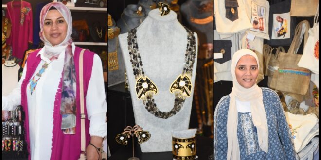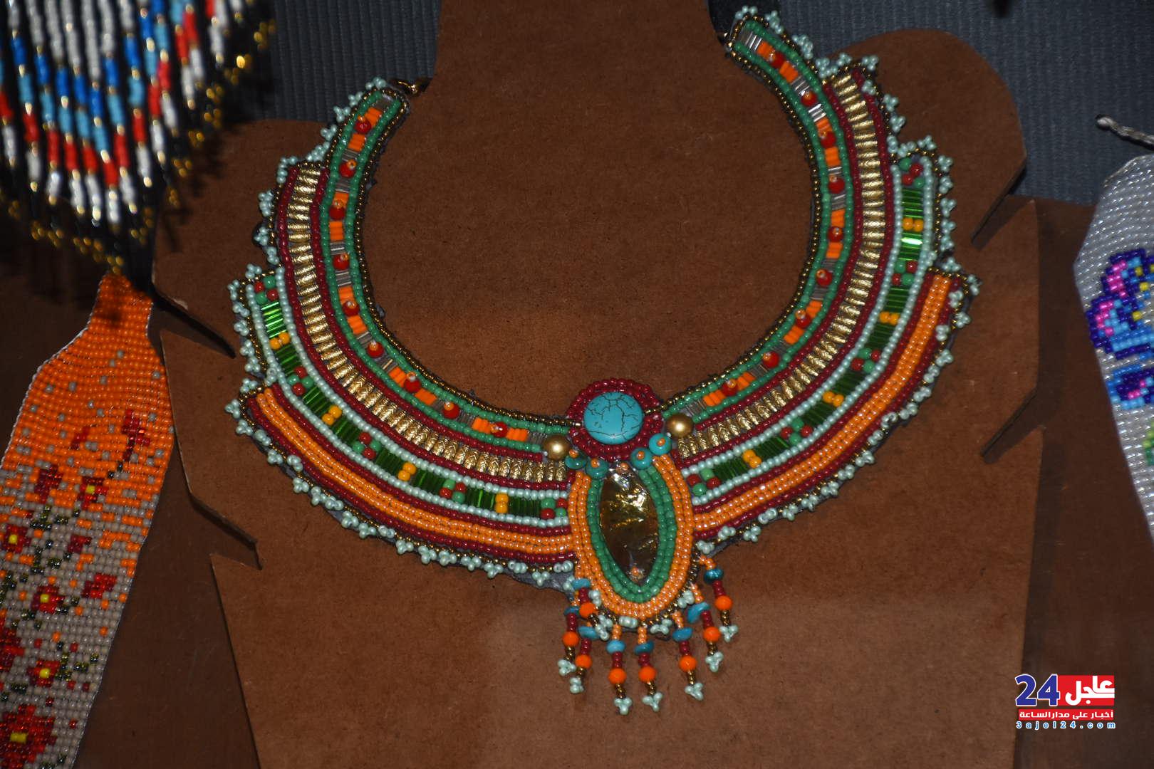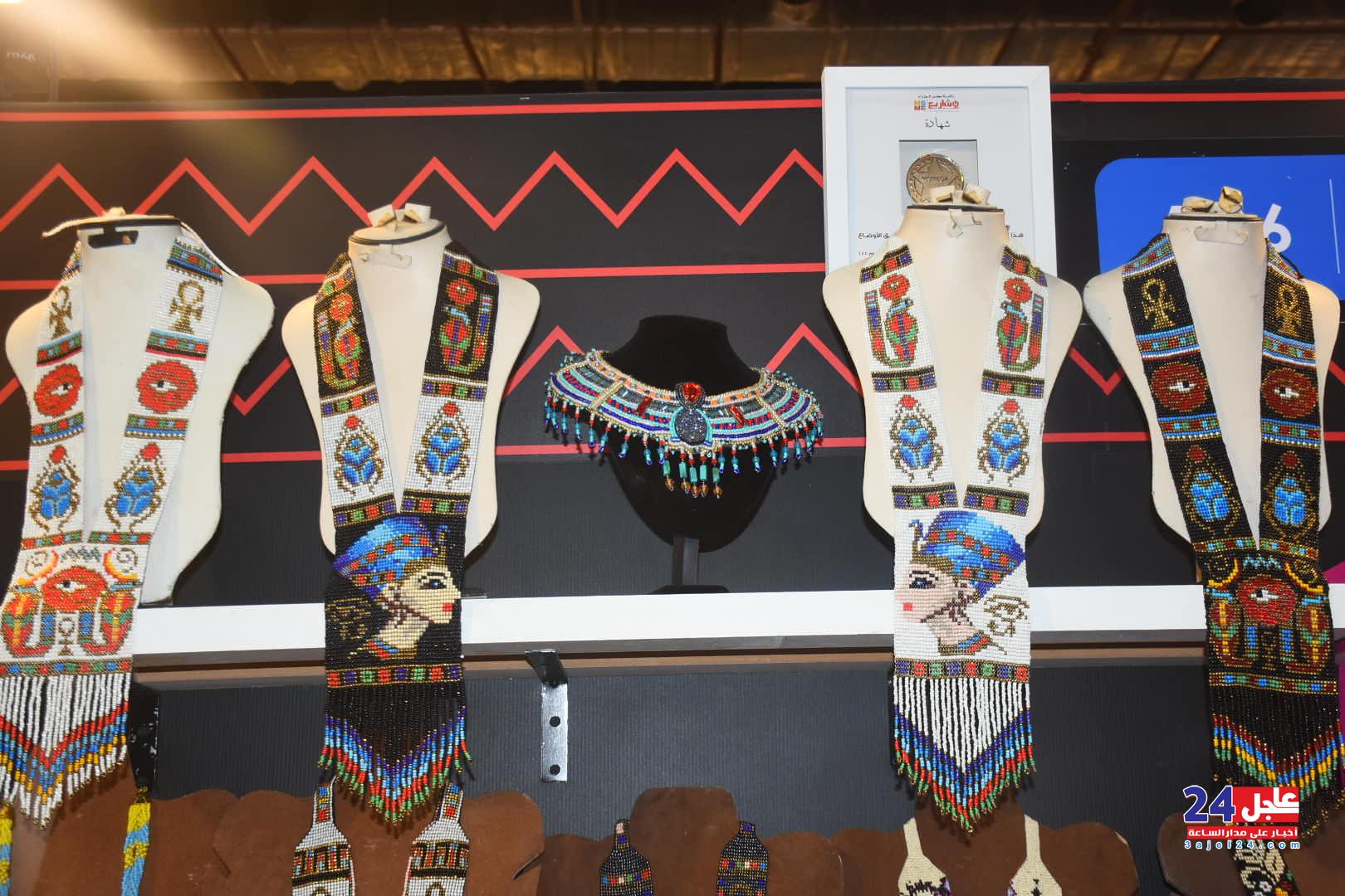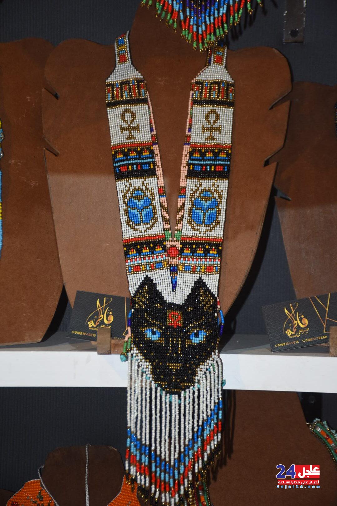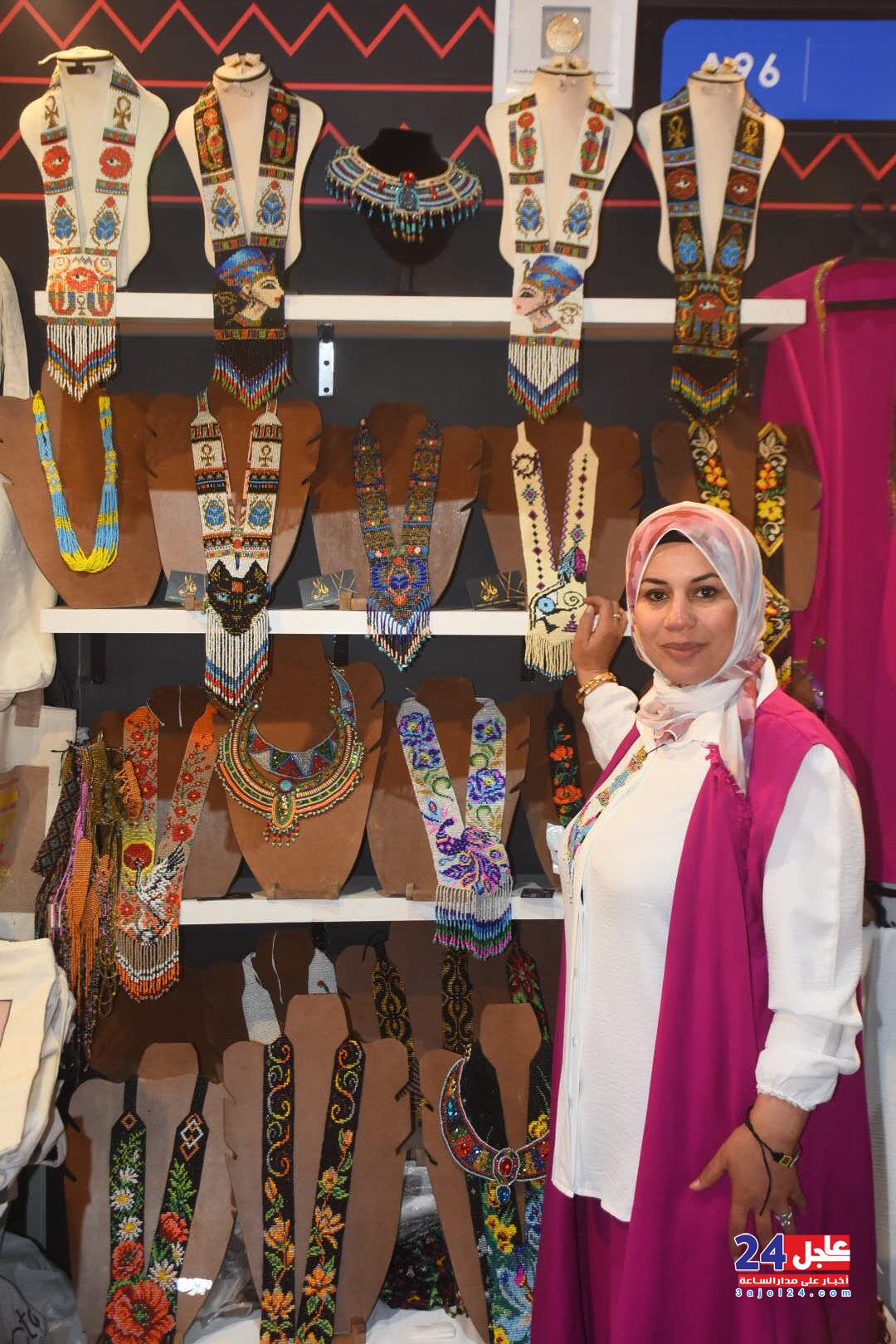 ١. الفنانة المصرية فاطمة صبحي ، والتي خطفت أنظار الزائرين بأرقى وأجمل تصميمات الاكسسوار الحريمي من الخرز والتي تجمل الطابع الفرعوني الأصيل :