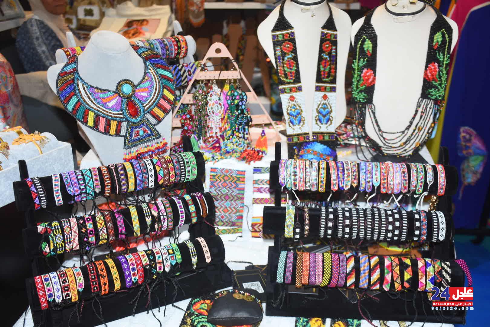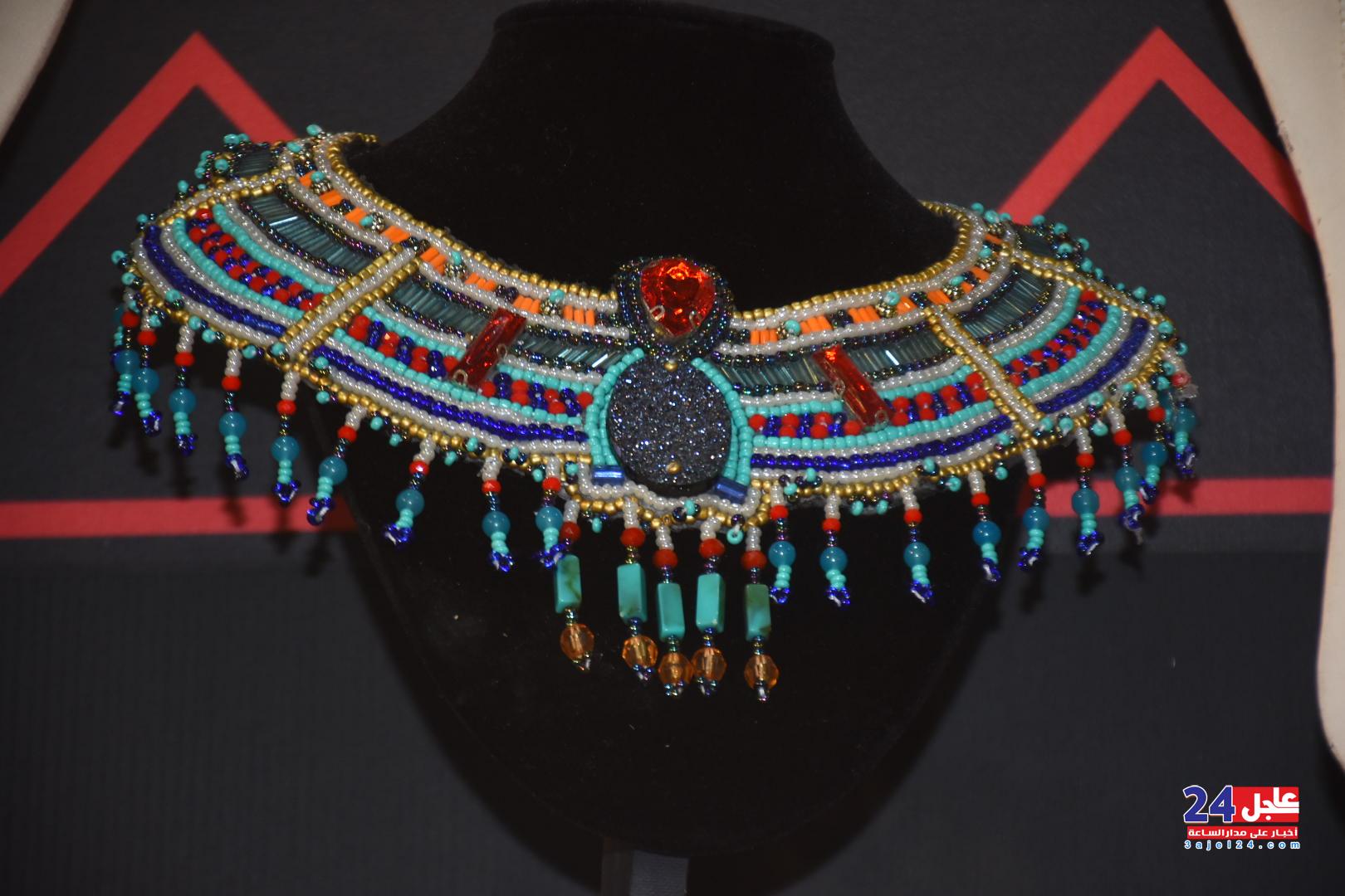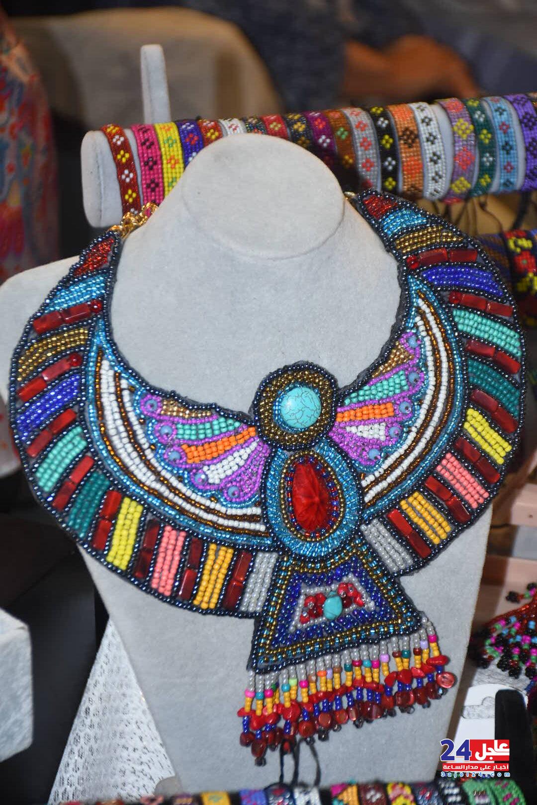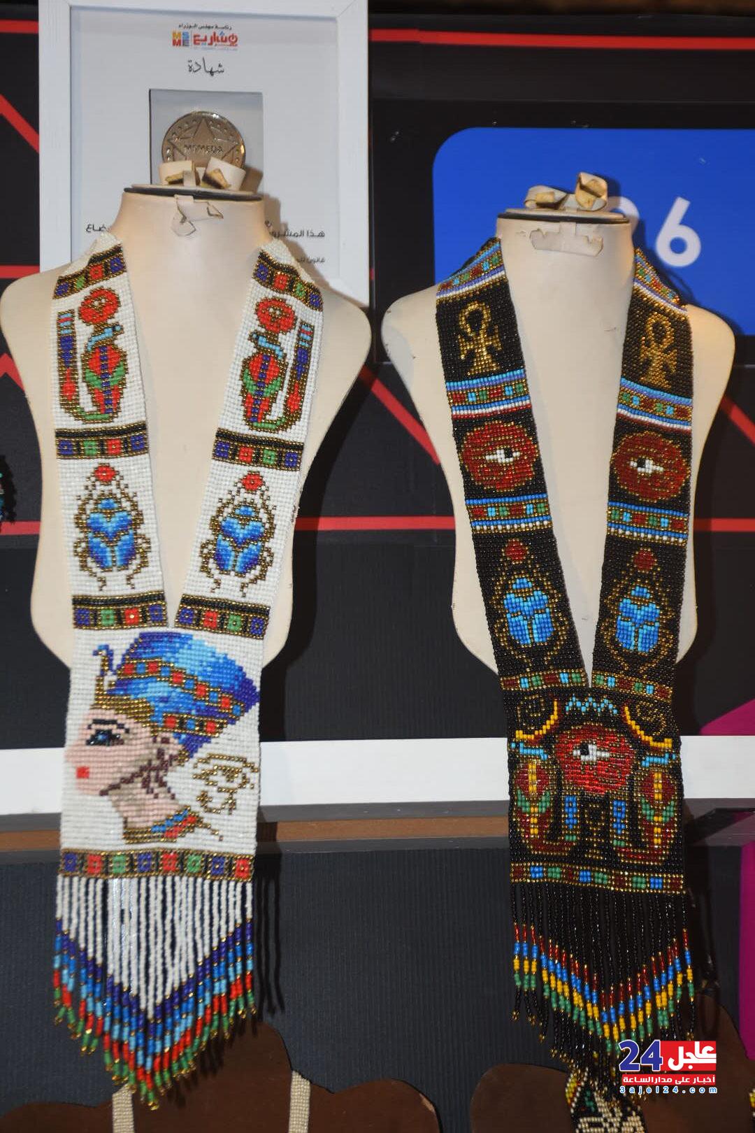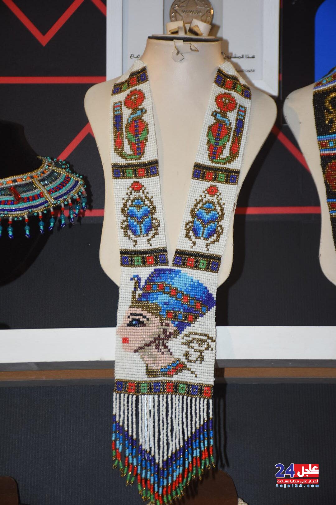 ١. الفنانة المصرية فاطمة صبحي ، والتي خطفت أنظار الزائرين بأرقى وأجمل تصميمات الاكسسوار الحريمي من الخرز والتي تجمل الطابع الفرعوني الأصيل :