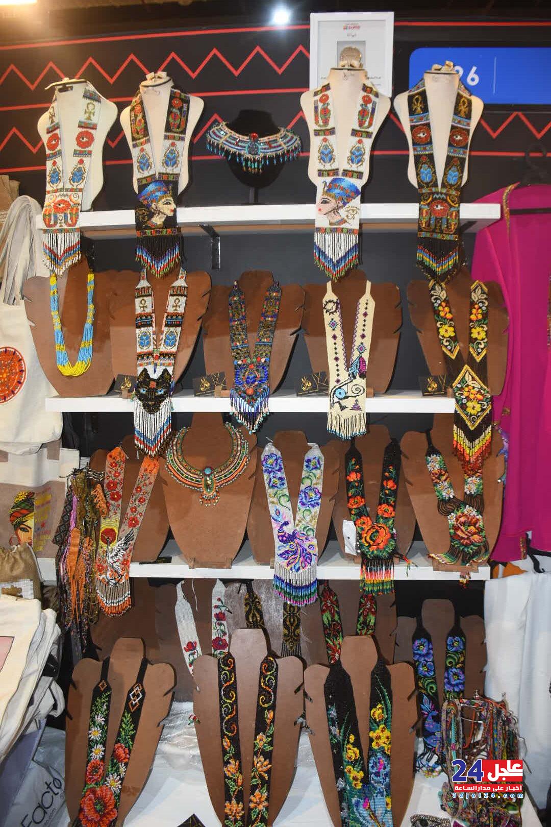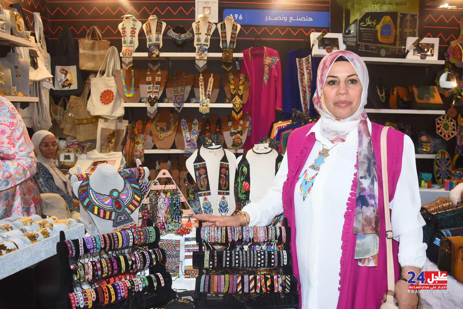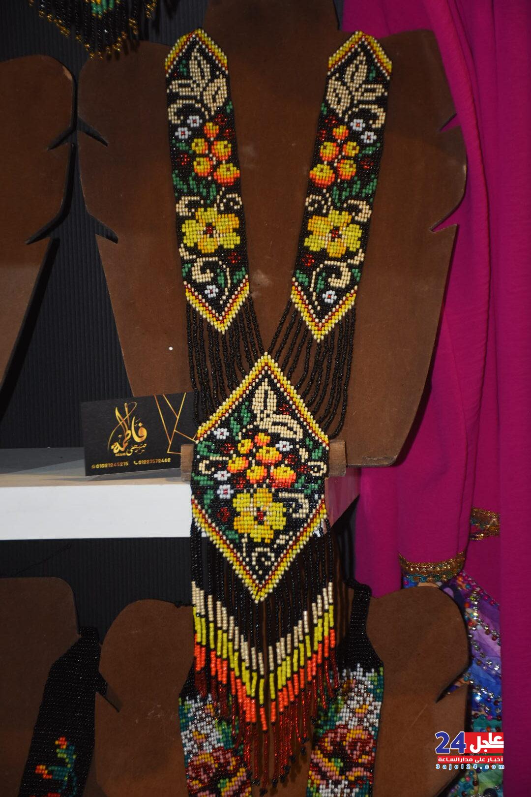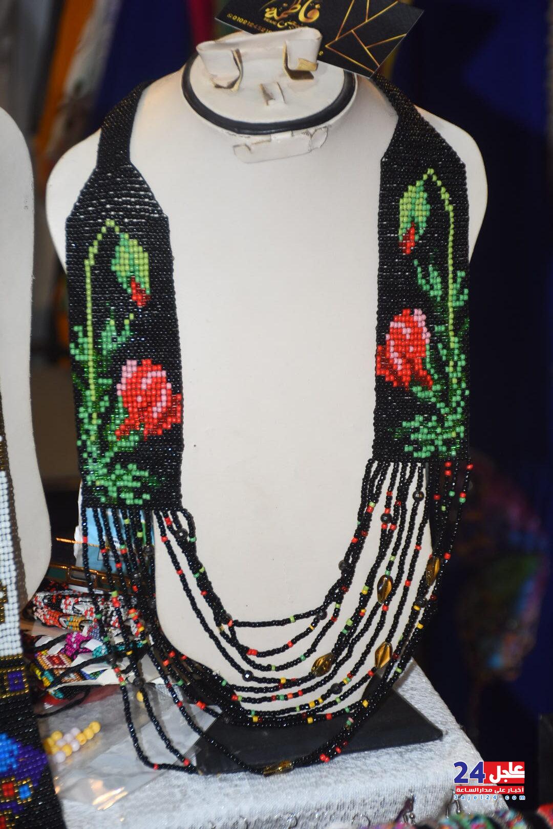 ١. الفنانة المصرية فاطمة صبحي ، والتي خطفت أنظار الزائرين بأرقى وأجمل تصميمات الاكسسوار الحريمي من الخرز والتي تجمل الطابع الفرعوني الأصيل :