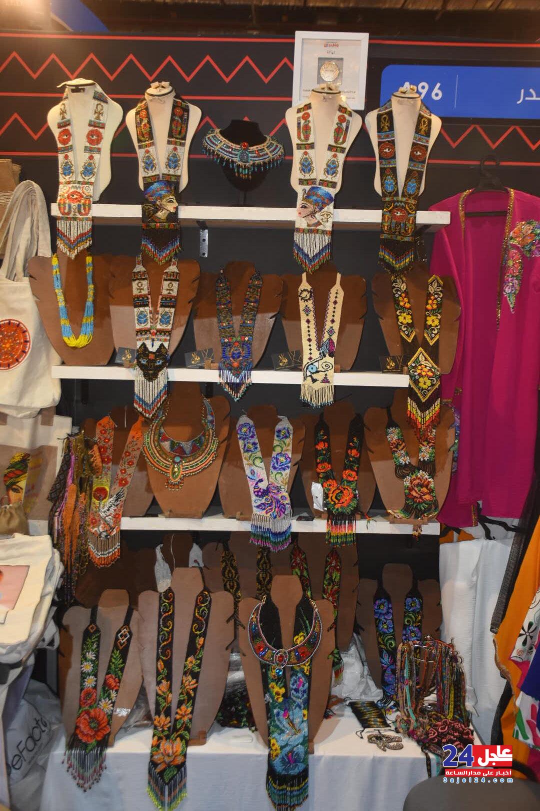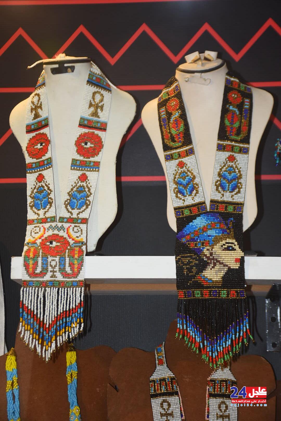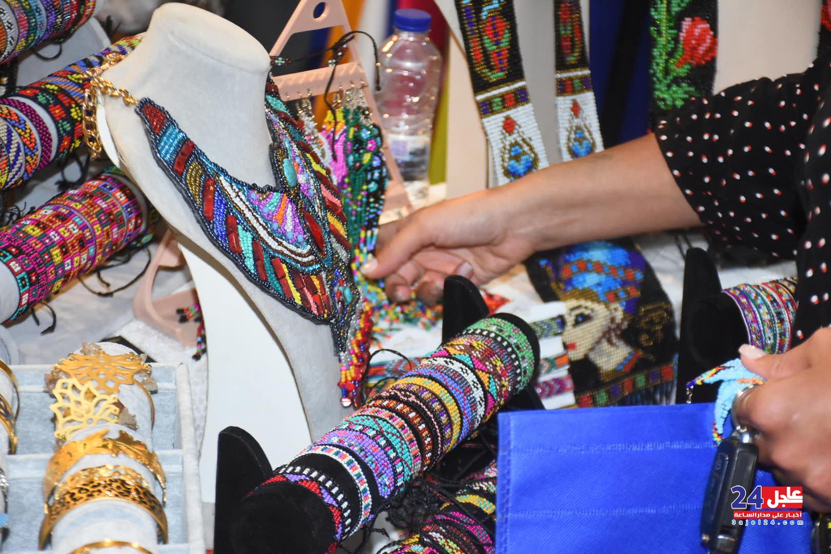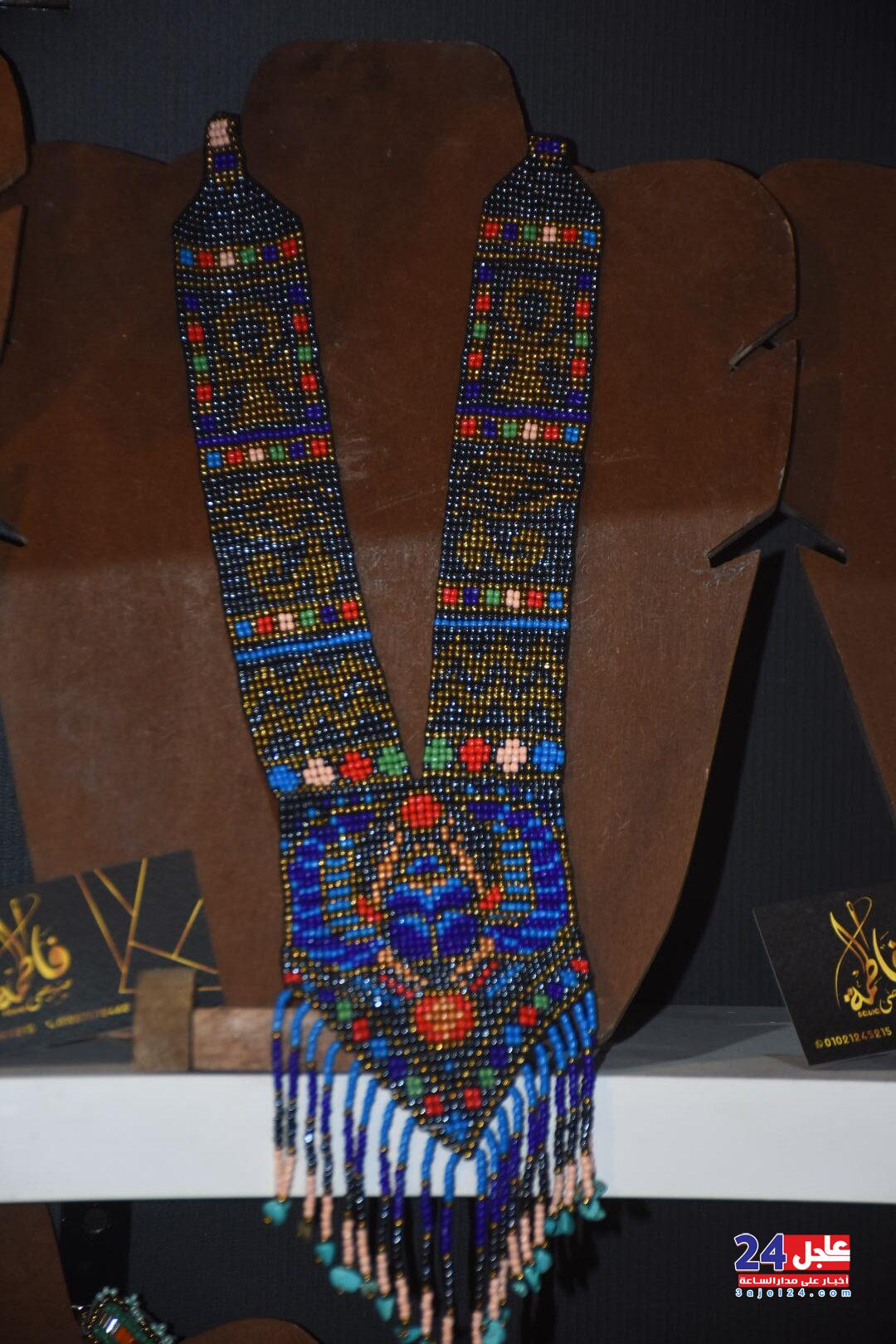 ١. الفنانة المصرية فاطمة صبحي ، والتي خطفت أنظار الزائرين بأرقى وأجمل تصميمات الاكسسوار الحريمي من الخرز والتي تجمل الطابع الفرعوني الأصيل :