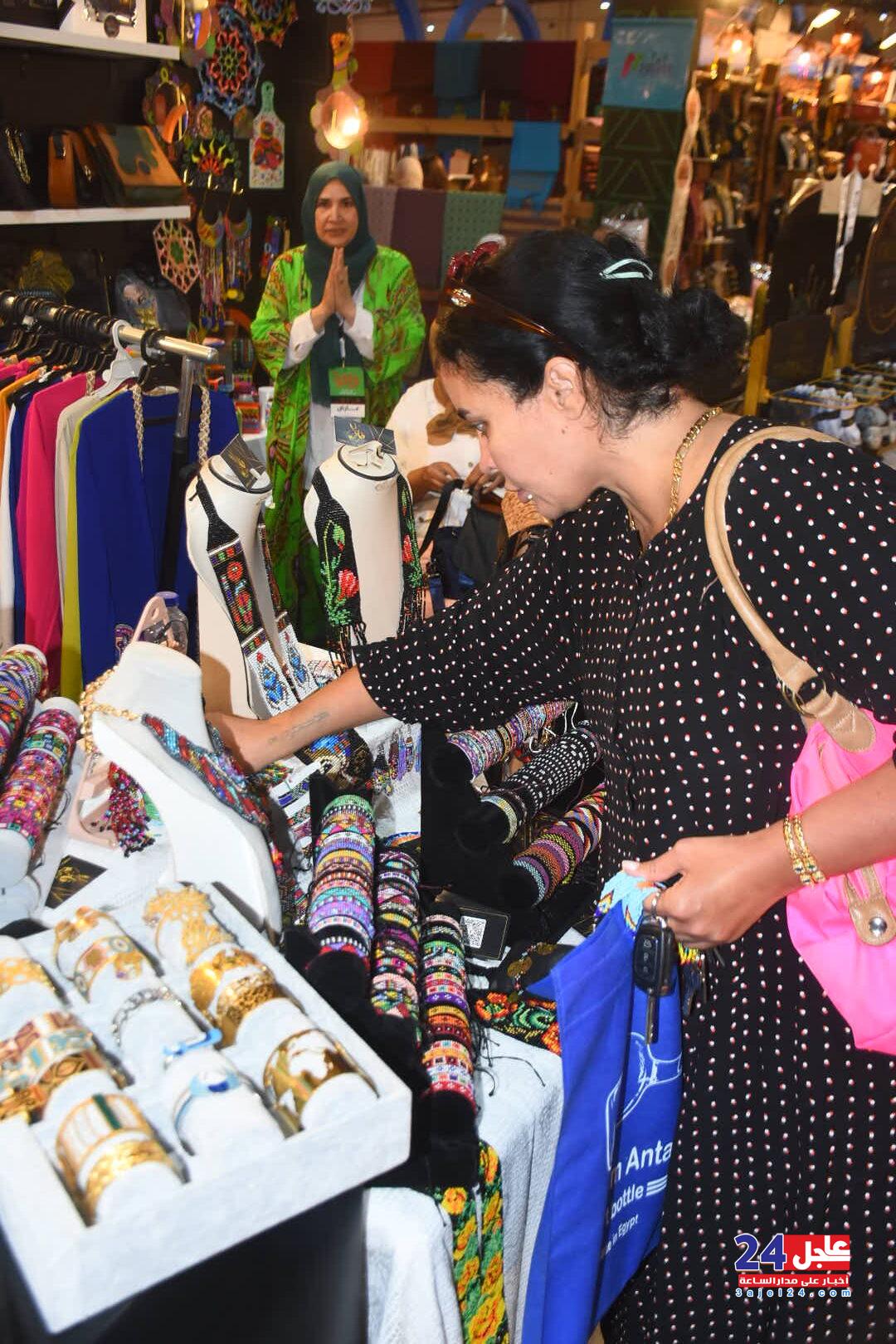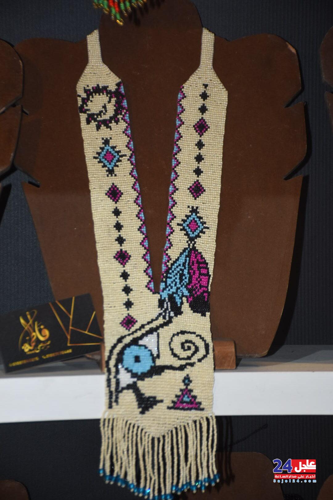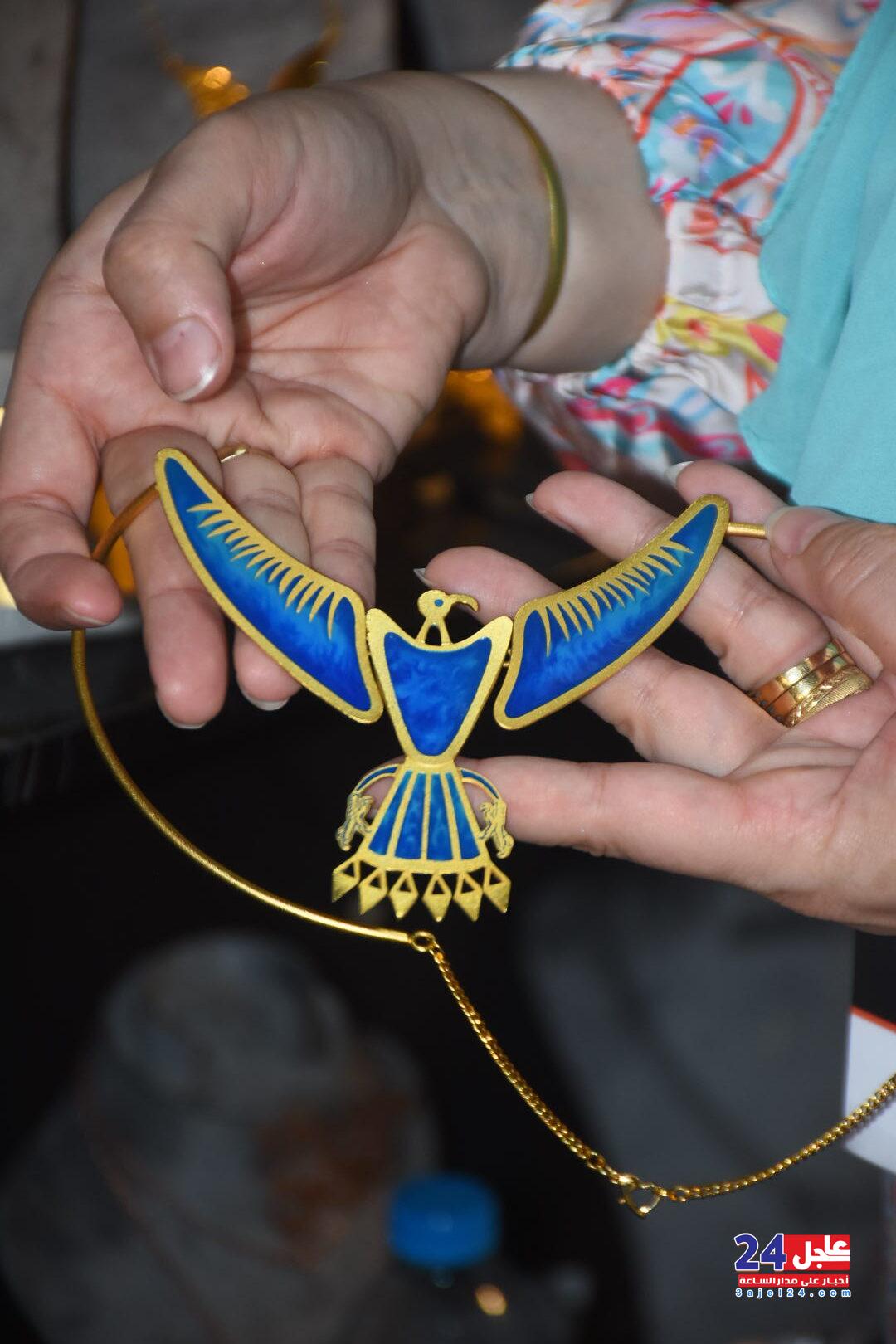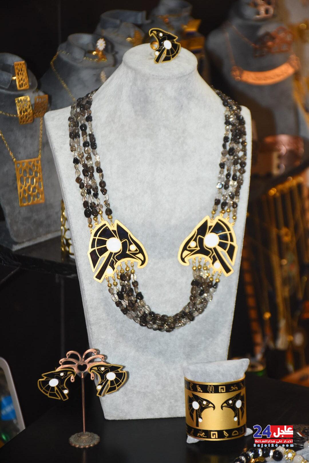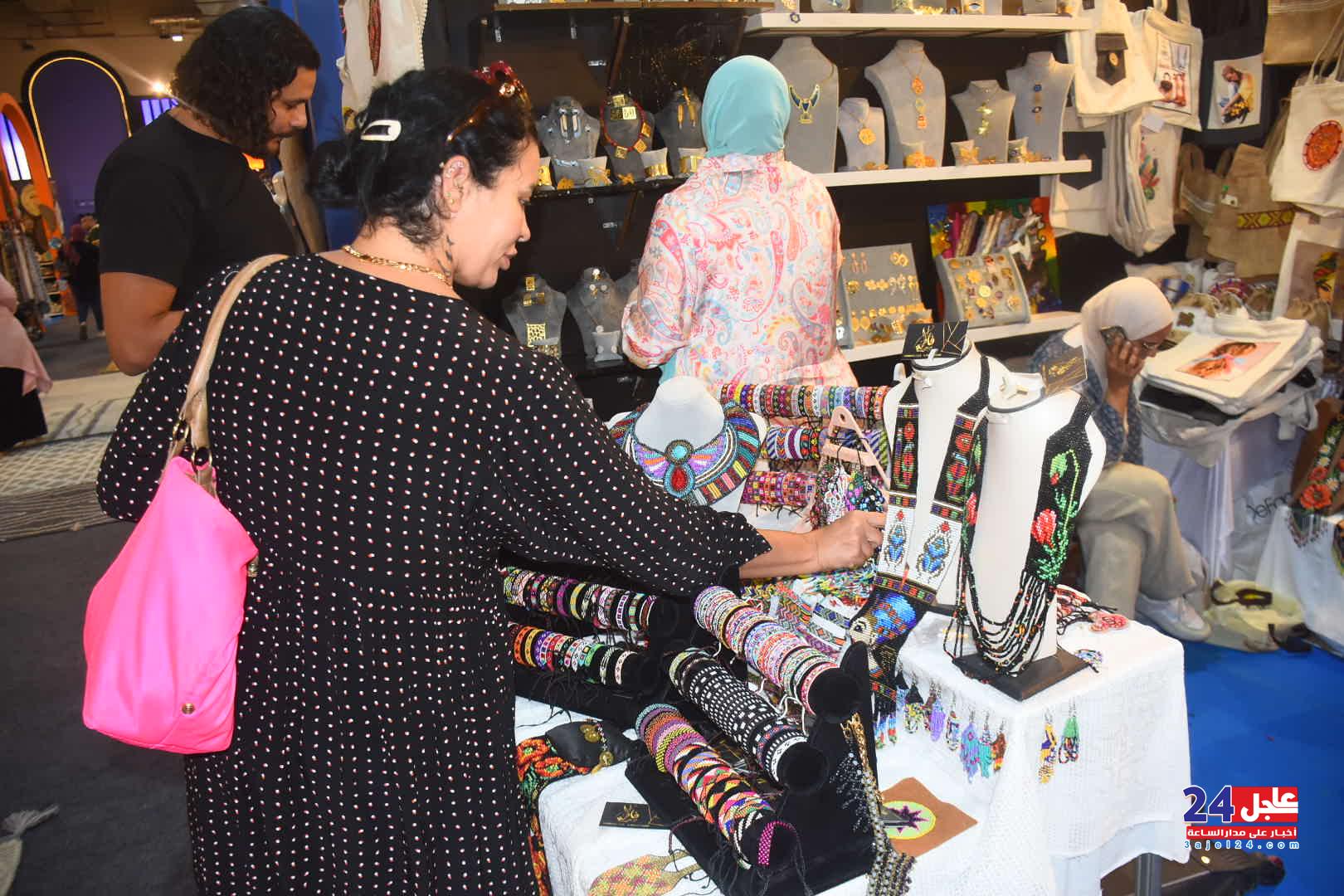 ١. الفنانة المصرية فاطمة صبحي ، والتي خطفت أنظار الزائرين بأرقى وأجمل تصميمات الاكسسوار الحريمي من الخرز والتي تجمل الطابع الفرعوني الأصيل :