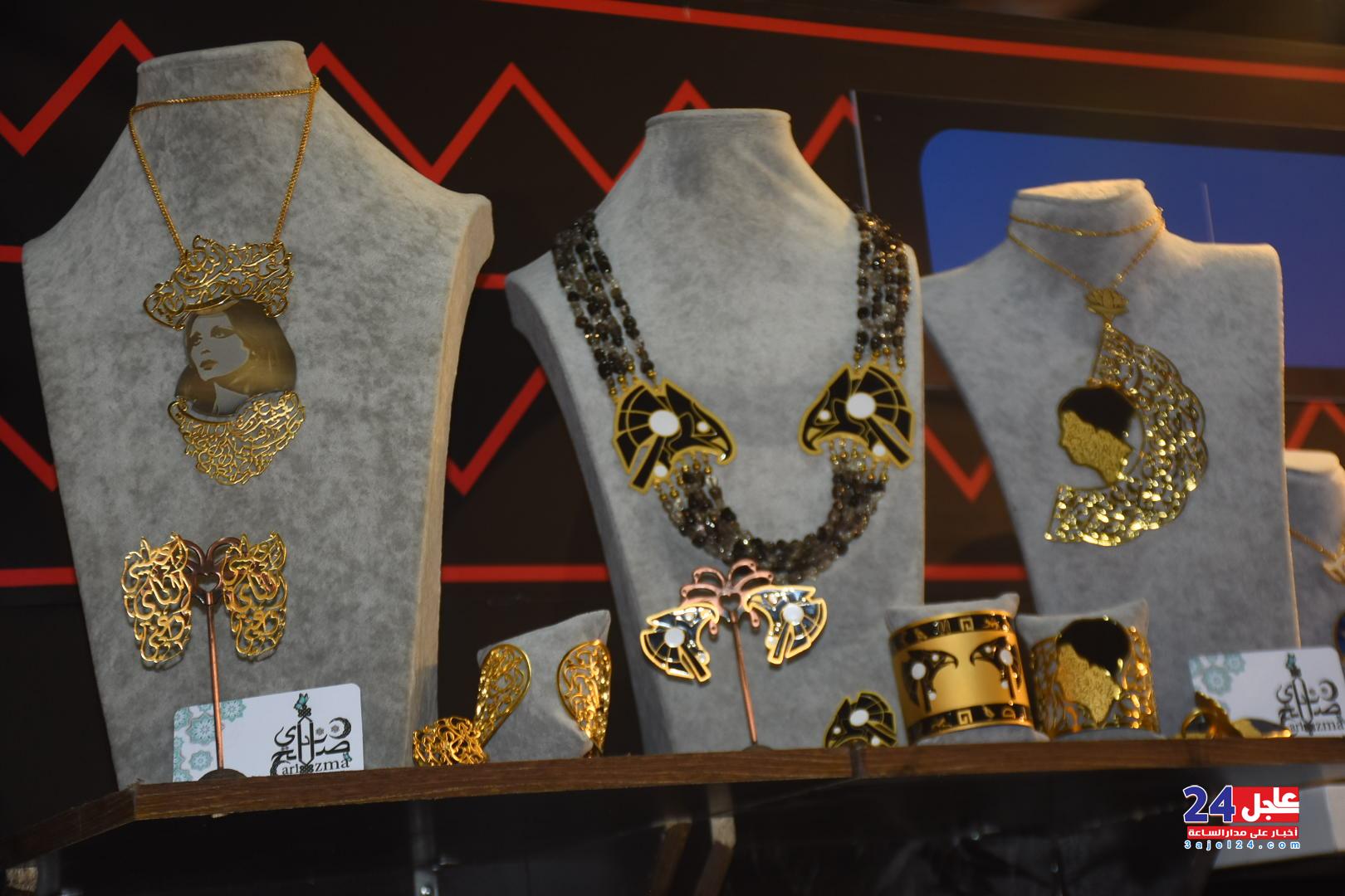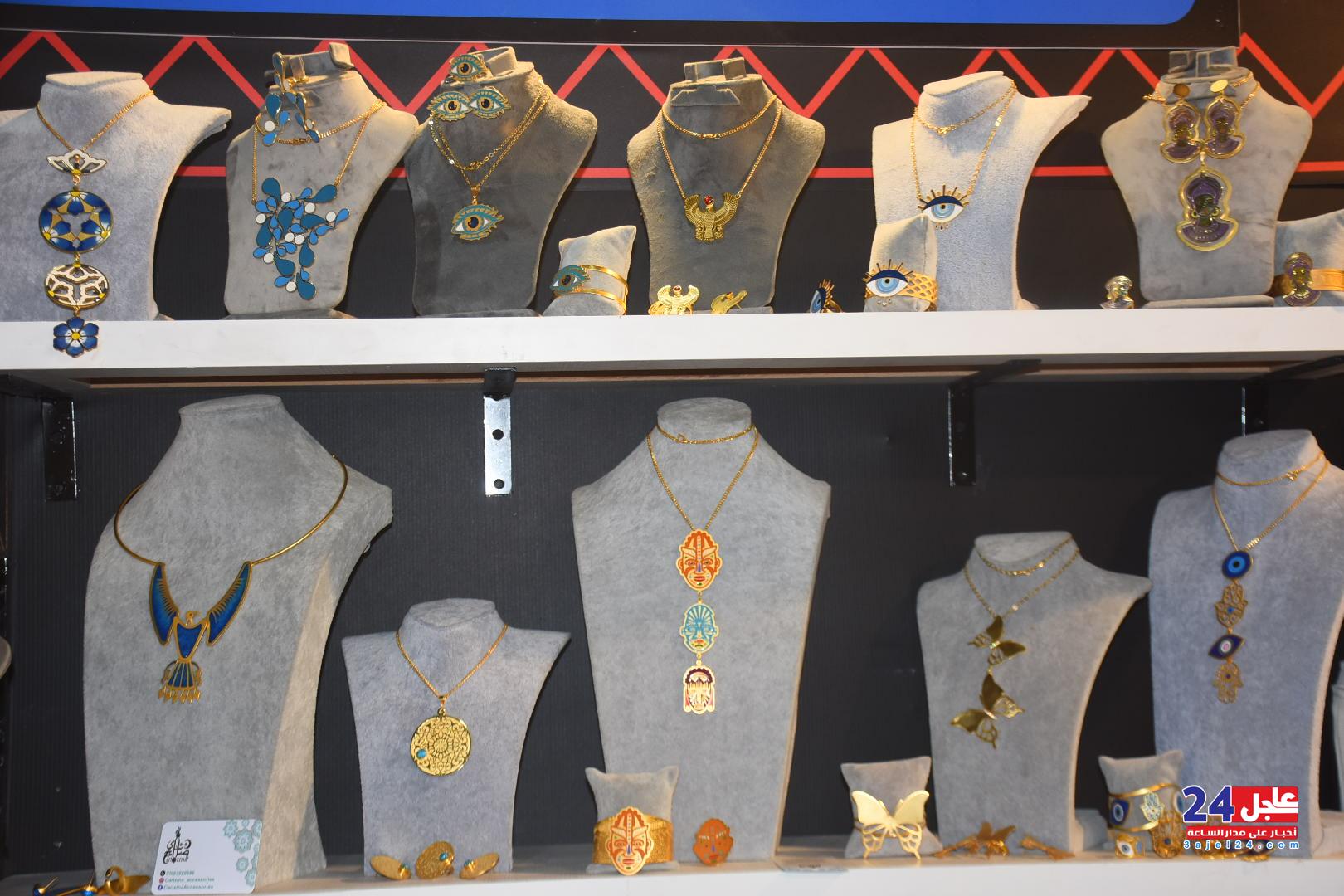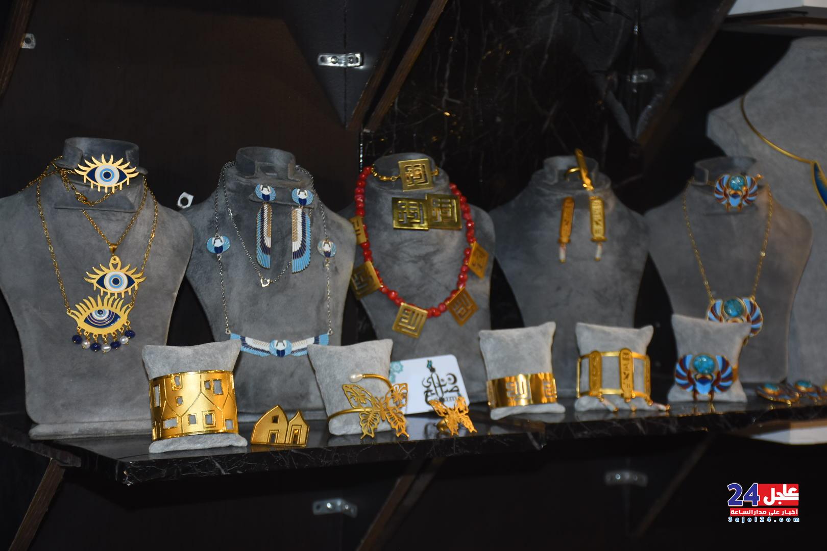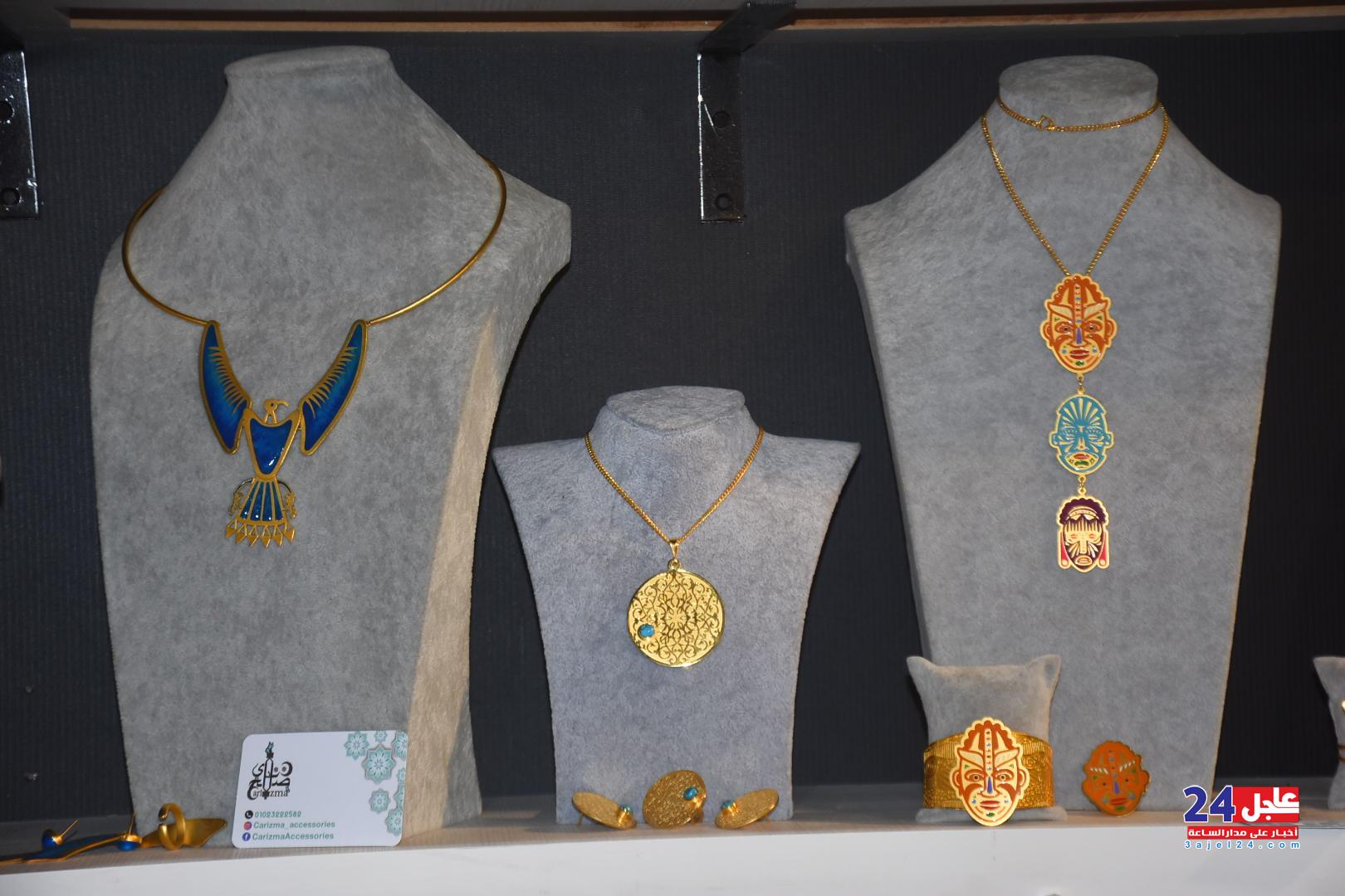 ١. الفنانة المصرية فاطمة صبحي ، والتي خطفت أنظار الزائرين بأرقى وأجمل تصميمات الاكسسوار الحريمي من الخرز والتي تجمل الطابع الفرعوني الأصيل :