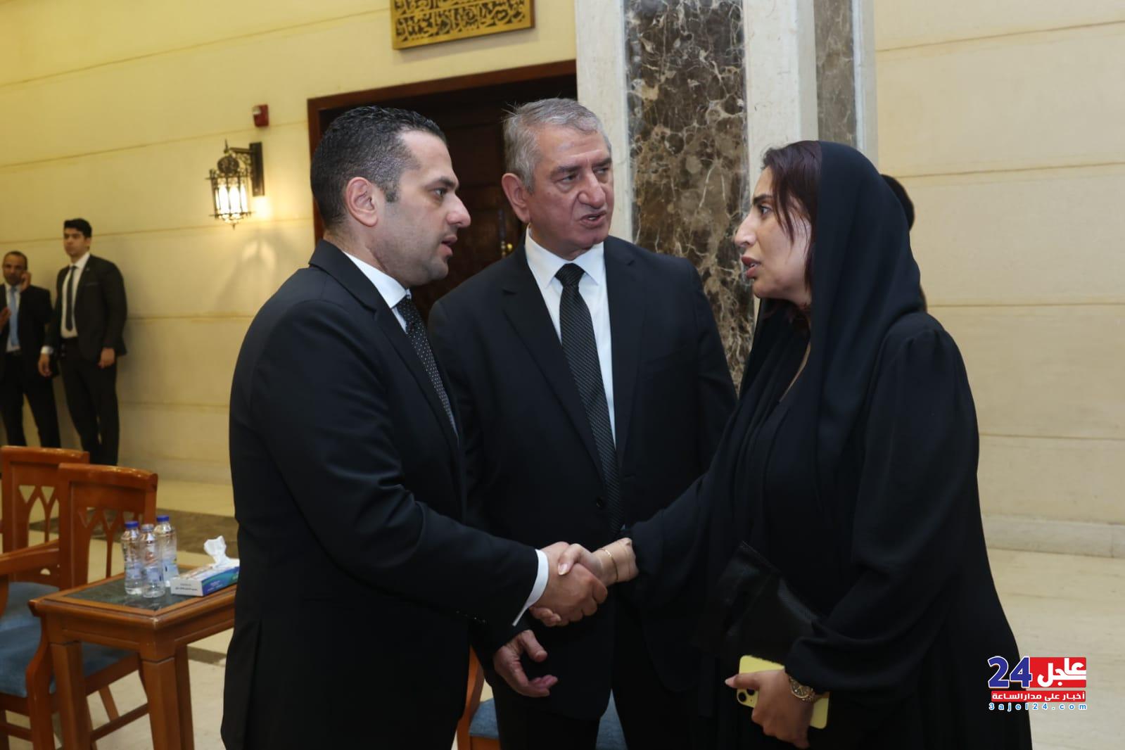 كان من بين الحضور المهندس إبراهيم محلب رئيس الوزراء الأسبق ، والفريق اسامة عسكر رئيس أركان حرب القوات المسلحة ، والفريق صدقي صبحي وزير الدفاع الأسبق ، والدكتور علي مصيلحي وزير التموين ، واوزيرة الدكتورة فايزة أبو النجا ، و الدكتور خالد عبد الغفار وزير الصحة، والدكتور أشرف صبحي وزير الشباب والرياضة واللواء هشام آمنة وزير التنمية المحلية، ووزير البترول طارق الملا بالإضافة إلى الدكتور محمد مختار جمعة وزير الأوقاف، ووزير التربية والتعليم رضا حجازي، ومحافظ القاهرة خالد عبد العال ، والفريق أسامة ربيع رئيس هيئة قناة السويس، وطارق قابيل وزير الصناعة ووزير التجارة والصناعة السابق ، والدكتور طارق شوقي وزير التعليم السابق، وامين أباظه وأحمد زكي عابدين واللواء محمد إبراهيم وزير الداخلية الأسبق، ومحمد سعفان وزير القوى العاملة السابق، والإعلامى الدكتور خالد ابو بكر، ووزير الخارجية الأسبق محمد العربي، ورجل الأعمال أحمد أبو هشيمة، والداعية الإسلامي مظهر شاهين، والفنان هاني رمزي والفنانة لطيفة ، ومهندسة الديكور رباب عبد العاطي ، وغيرهم .