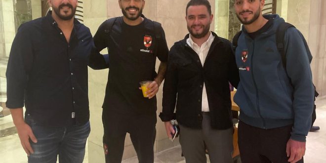 شاهد بالصور ….حماده ابو العز وأصدقائه يدعمون الأهلي في مواجهته مع الزمالك غدا