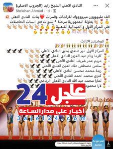 حصلت اللاعبة نور شندي يحيى لاعبة النادي الأهلى للجمباز ، ونجلة الكابتن شندي يحيى بطل المصارعة المعروف ورئيس شركة سيفتي فايف للحراسات الامنية ، حصلت على ذهبية كأس مصر للجمباز عن سن ال٩ سنوات .