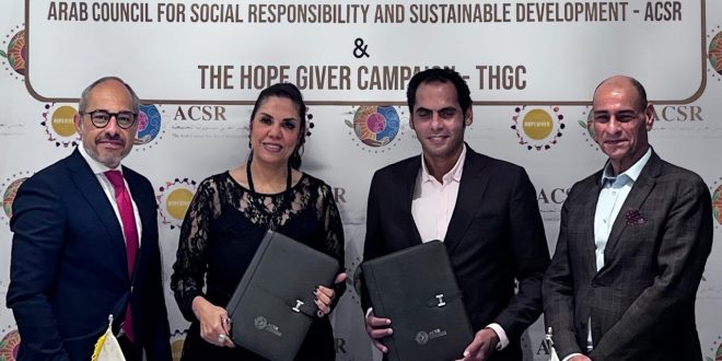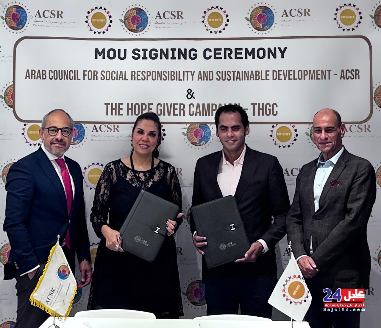 أعلن المجلس العربي للمسؤولية المجتمعية والتنمية المستدامة وحملة مانحي الأمل العالمية (THCG) رسميًا عن بروتوكول تعاون خلال اجتماع عقد في مقر المجلس العربي للمسؤولية المجتمعية والتنمية المستدامة. وتهدف هذه الشراكة الإستراتيجية إلى الاستفادة من جهودهم المشتركة في دعم المسؤولية المجتمعية ، ورفع مستوى الوعي ،وتنفيذ المبادرات الاقليمية التي تستهدف مختلف شرائح المجتمع.