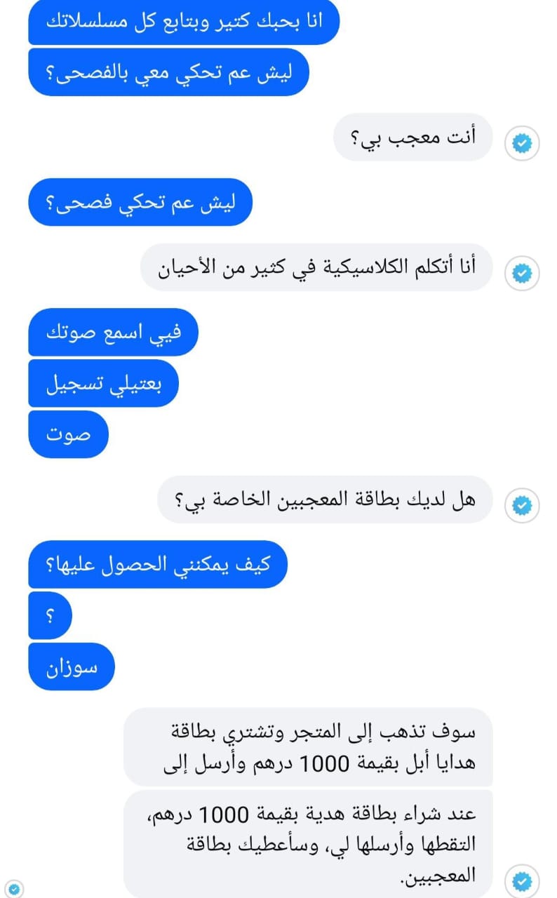 وطلبت تلك البرامج التي تقوم بالرد بعض الأموال من المتابعين، لذلك تحذر سوزان نجم الدين المتابعين أن تلك الرسائل ليست من خلالها.