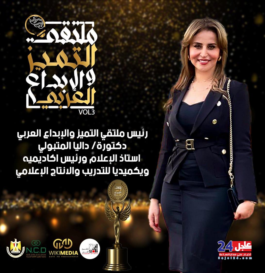 تستعد دكتور داليا المتبولي رئيس ملتقى التميز والإبداع العربي، لإقامة الدورة الثالثة من الملتقى برعاية اكاديمية الفنون التابعة لوزارة الثقافة، والتي من المقرر إقامتها يوم 7 سبتمبر المقبل والمقام بفندق النايل ريتز كارلتون.