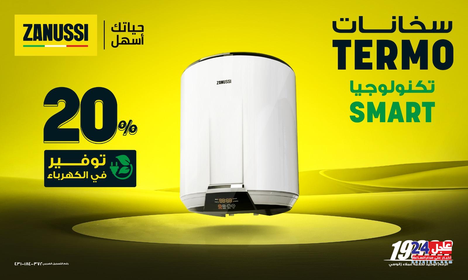 وتوفر السخانات الجديدة من نوع”Termo” ما يقارب 20% من استهلاك الطاقة الكهربائية، بالإضافة إلى Max Guard خاصية التطهير الحراري المضاد لانتشار البكتريا و الجراثيم وهو ما يجعلها الخيار الأمثل للأسر التي تبحث عن كفاءة استهلاك الطاقة بالإضافة إلى الأداء القوي الذي تمتاز به كافة أجهزة زانوسي.
